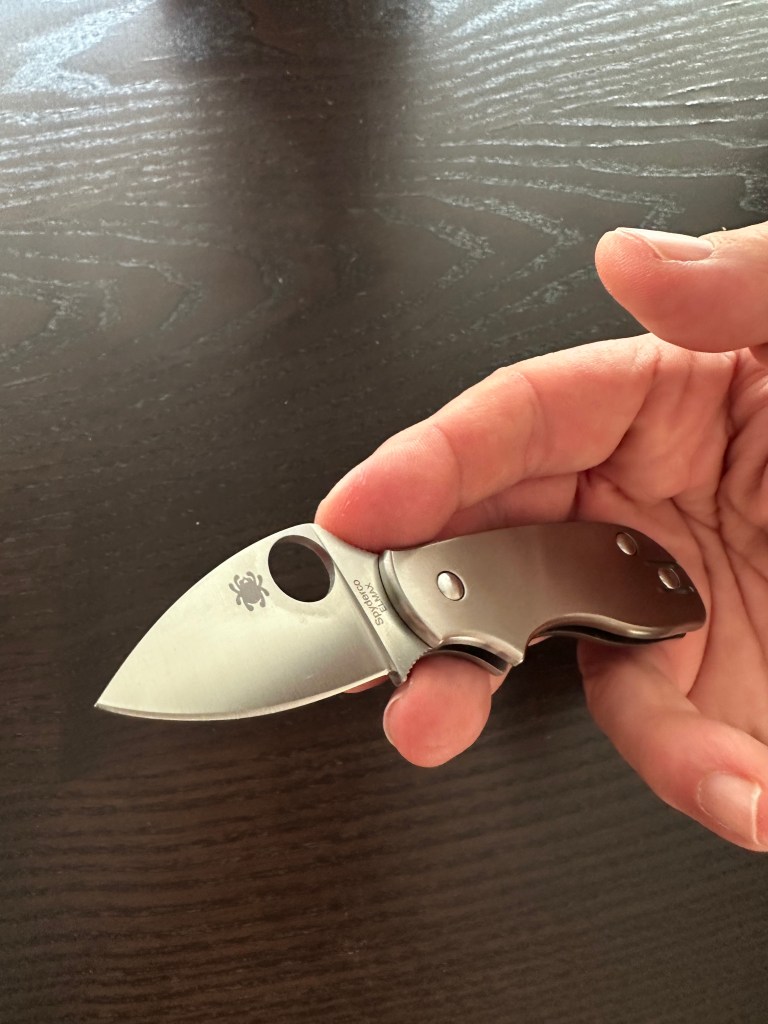 (The only blade that might actually “help” you — for example in an attempted‑rape situation where you are physically overwhelmed, dominated, and restrained — is also the one that will almost certainly land you in even more trouble afterward. And if you ever reached that true last‑ditch moment, your best hope would ironically be a short serrated edge rather than a razor edge; under an adrenaline surge, an aggressor won’t even register a clean cut. The Spyderco Manbug Wharncliffe SpyderEdge comes to mind. But even then, you would need the mindset to become the aggressor just to survive — and you must be prepared to defend your actions in court afterward.)