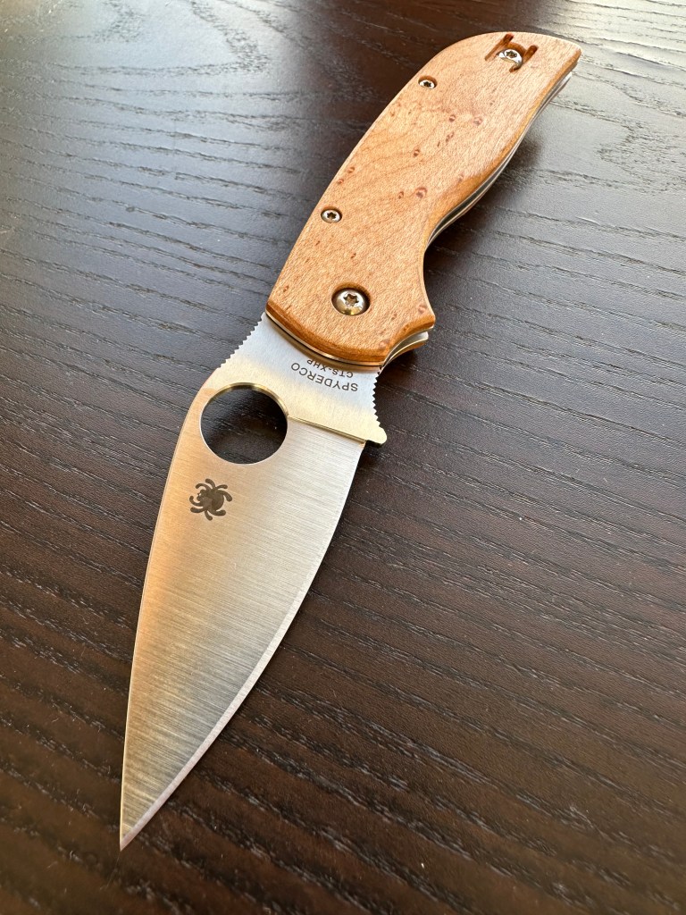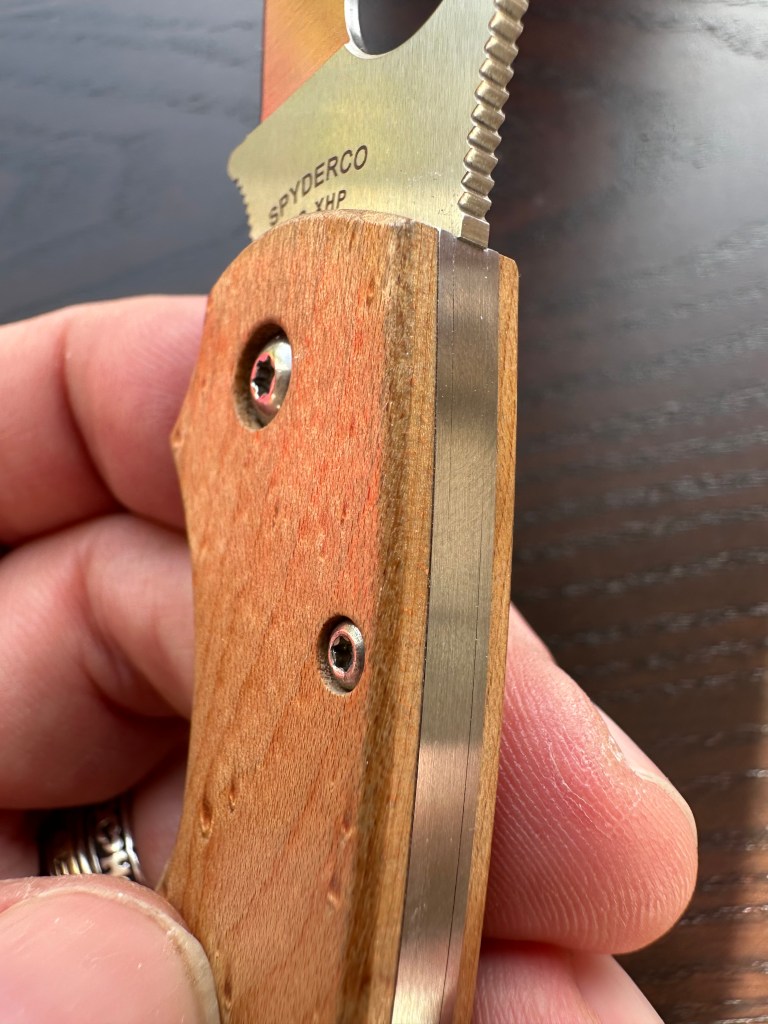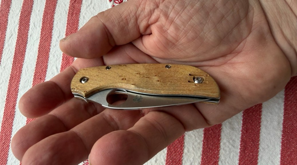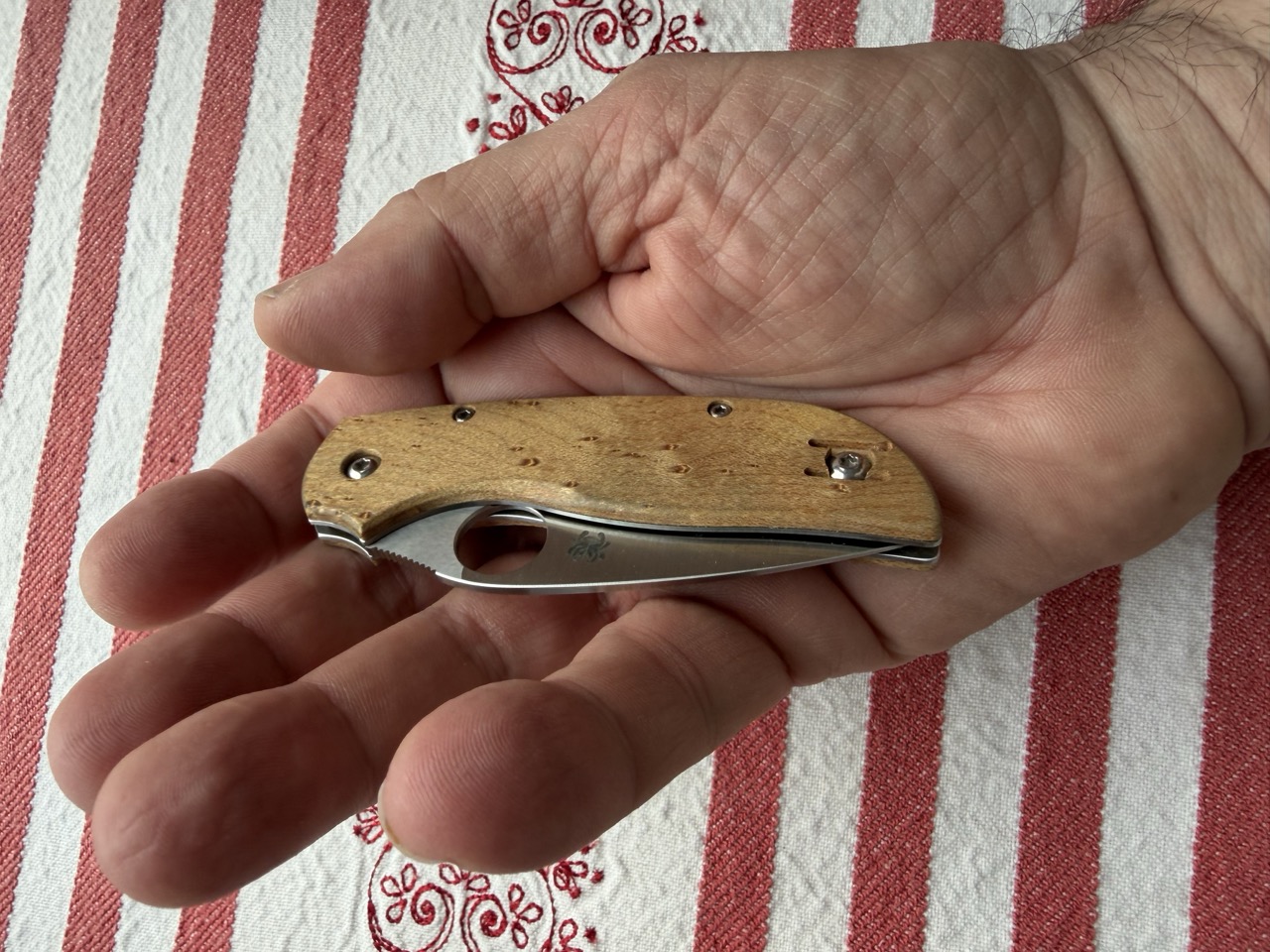 This is my first Spyderco folder with wooden scales, and I must say — it has real charm.