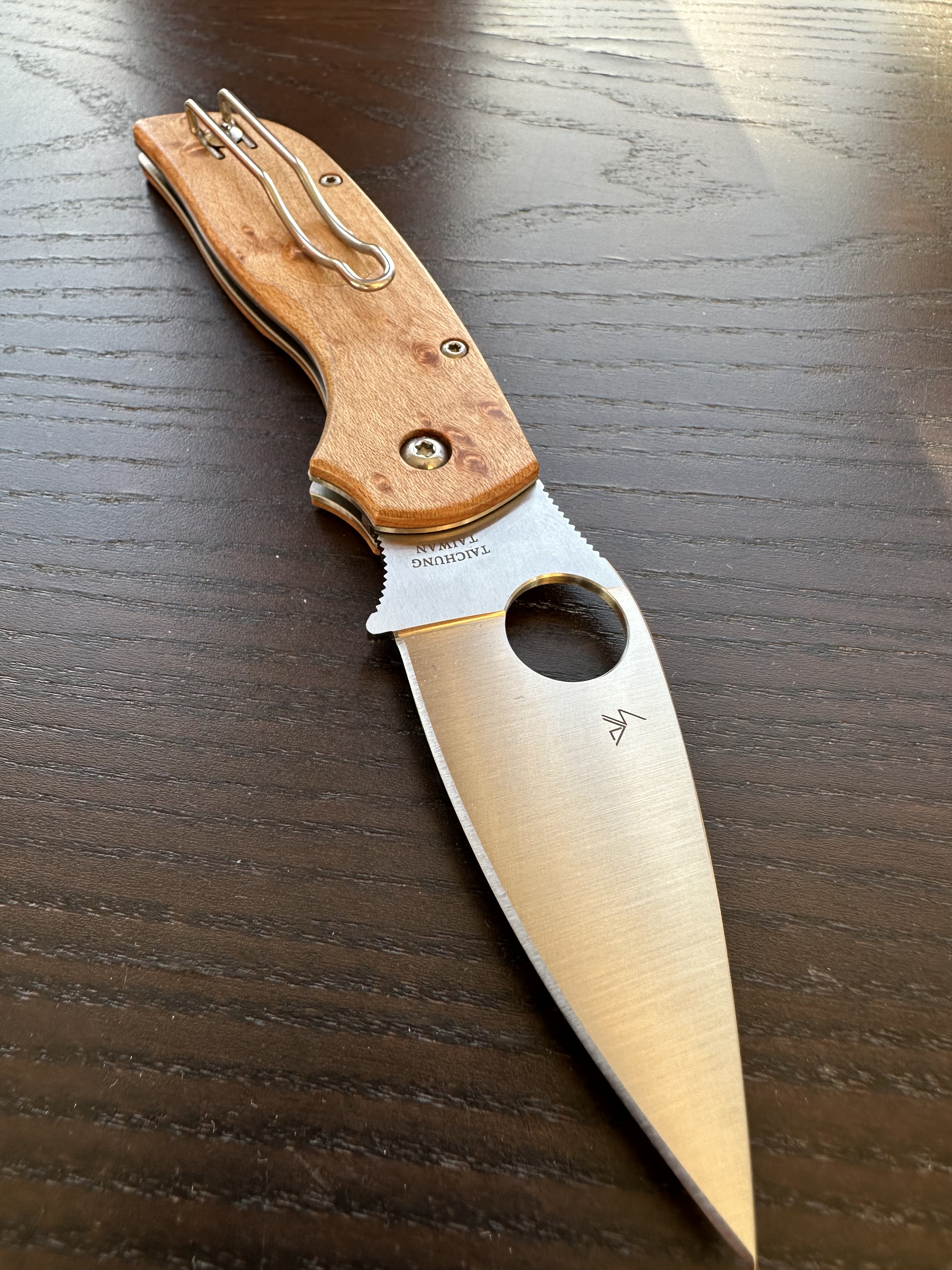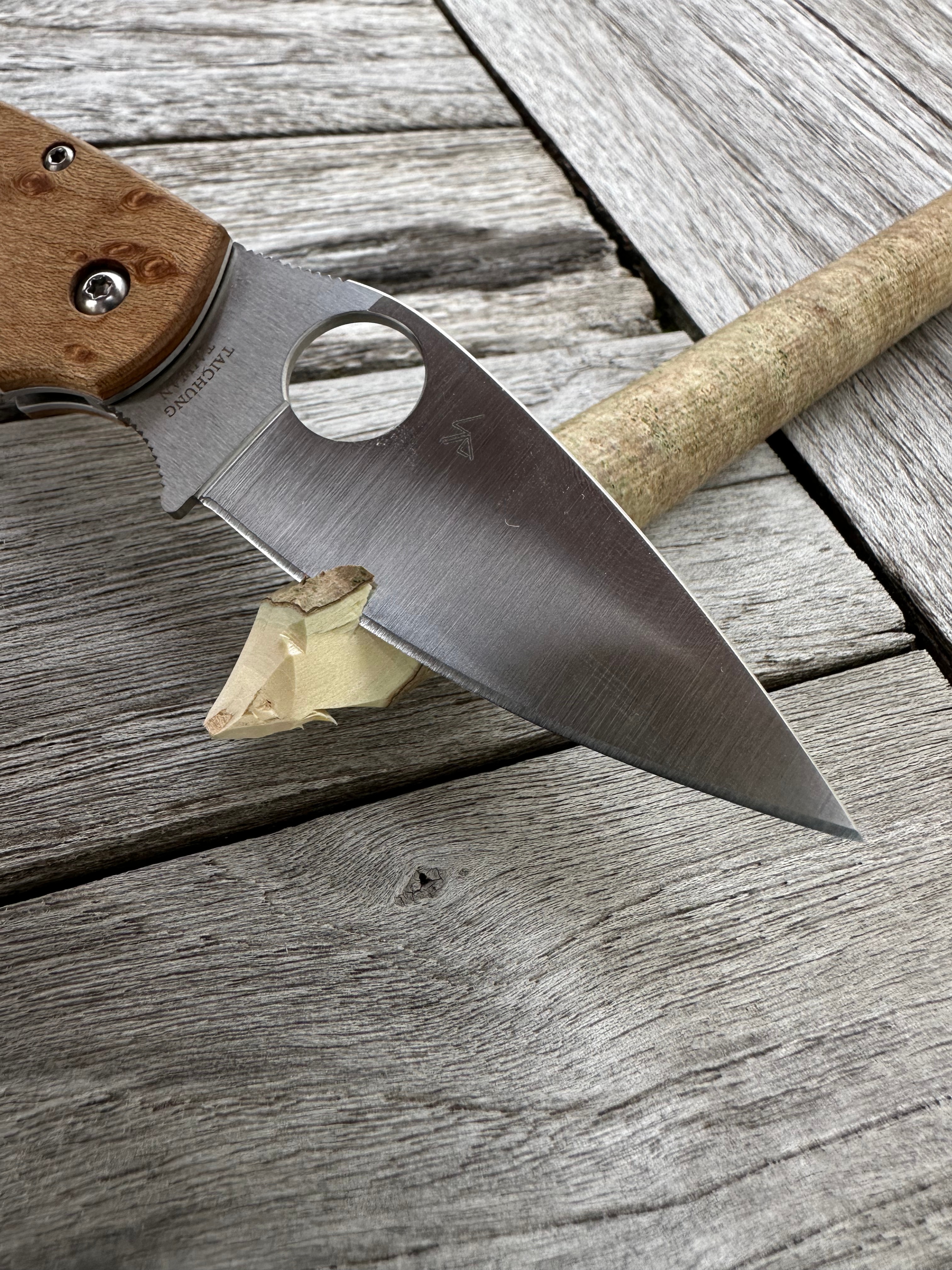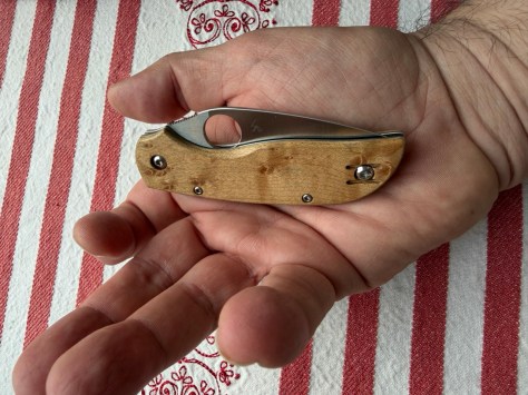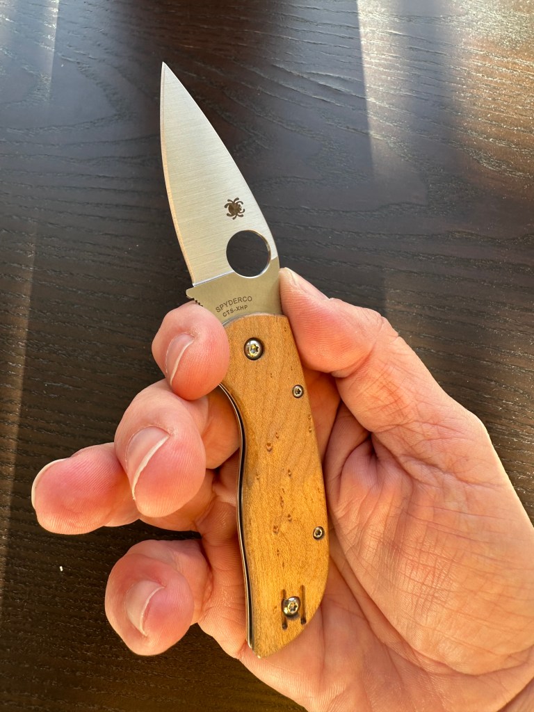 This is my first Spyderco folder with wooden scales, and I must say — it has real charm.