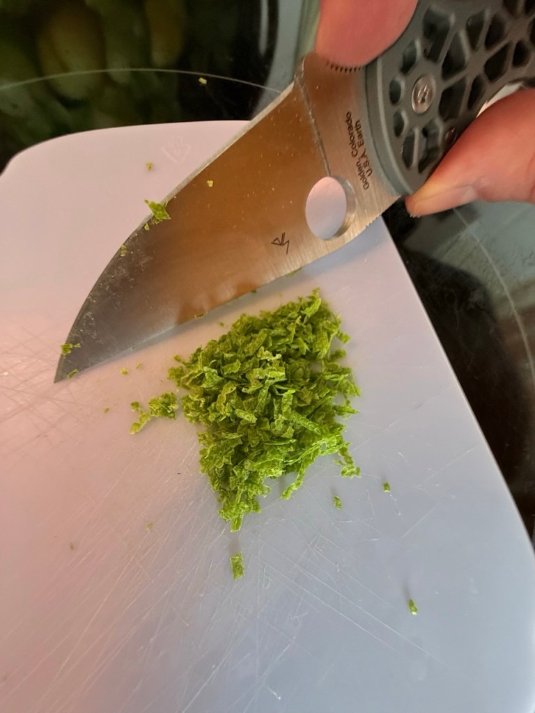 Using the straight spine of the blade to push or gather ingredients on the cutting board is another advantage the Edgerati offers—something you simply can’t do with the Bodacious or the Shaman.