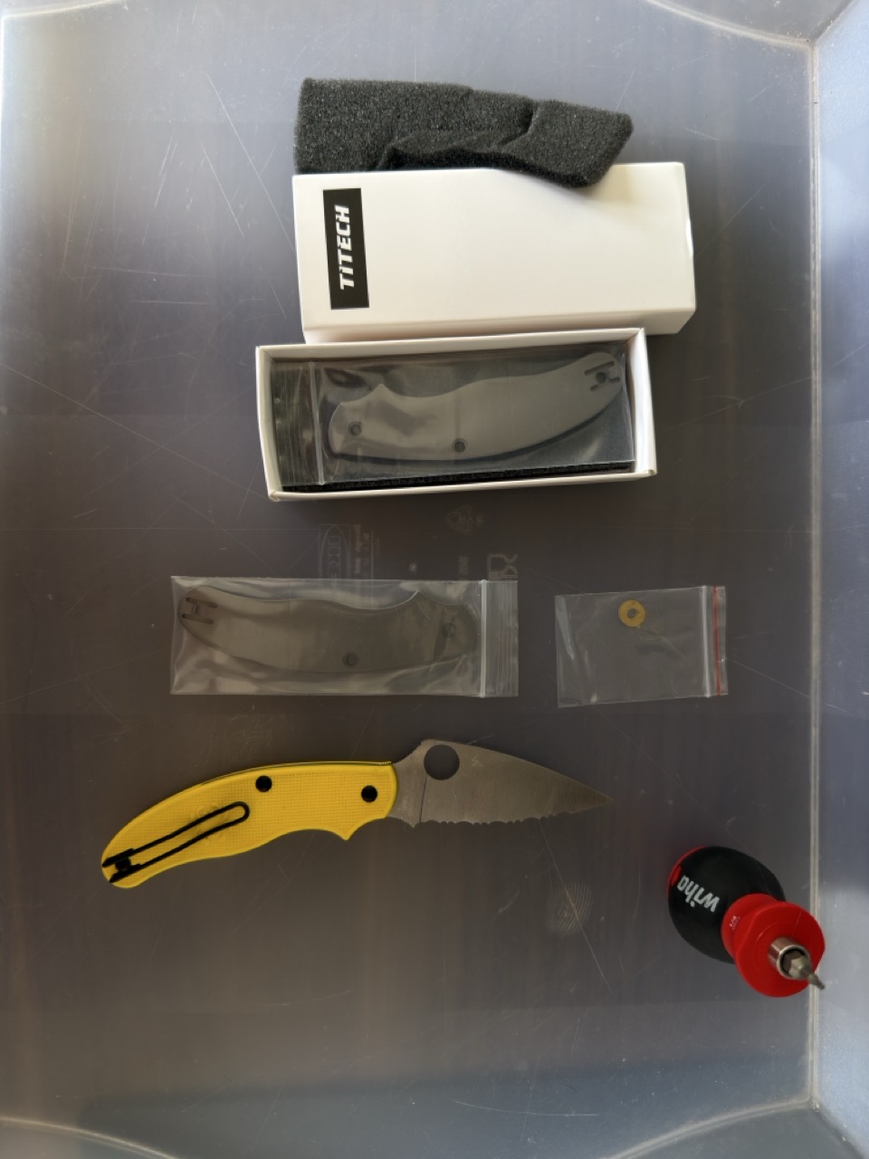 Installing Titech titanium scales from Heinnie Haynes onto a Spyderco UKPK is less a mechanical operation than a quiet exercise in precision, patience, and restraint—something closer to watchmaking than simple knife maintenance. And I’m clumsy.