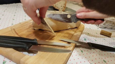But really that knife is really happy in the wood. It has not the most ergonomic handle for hard wood cutting but the gentle belly helps a lot in push cuts.