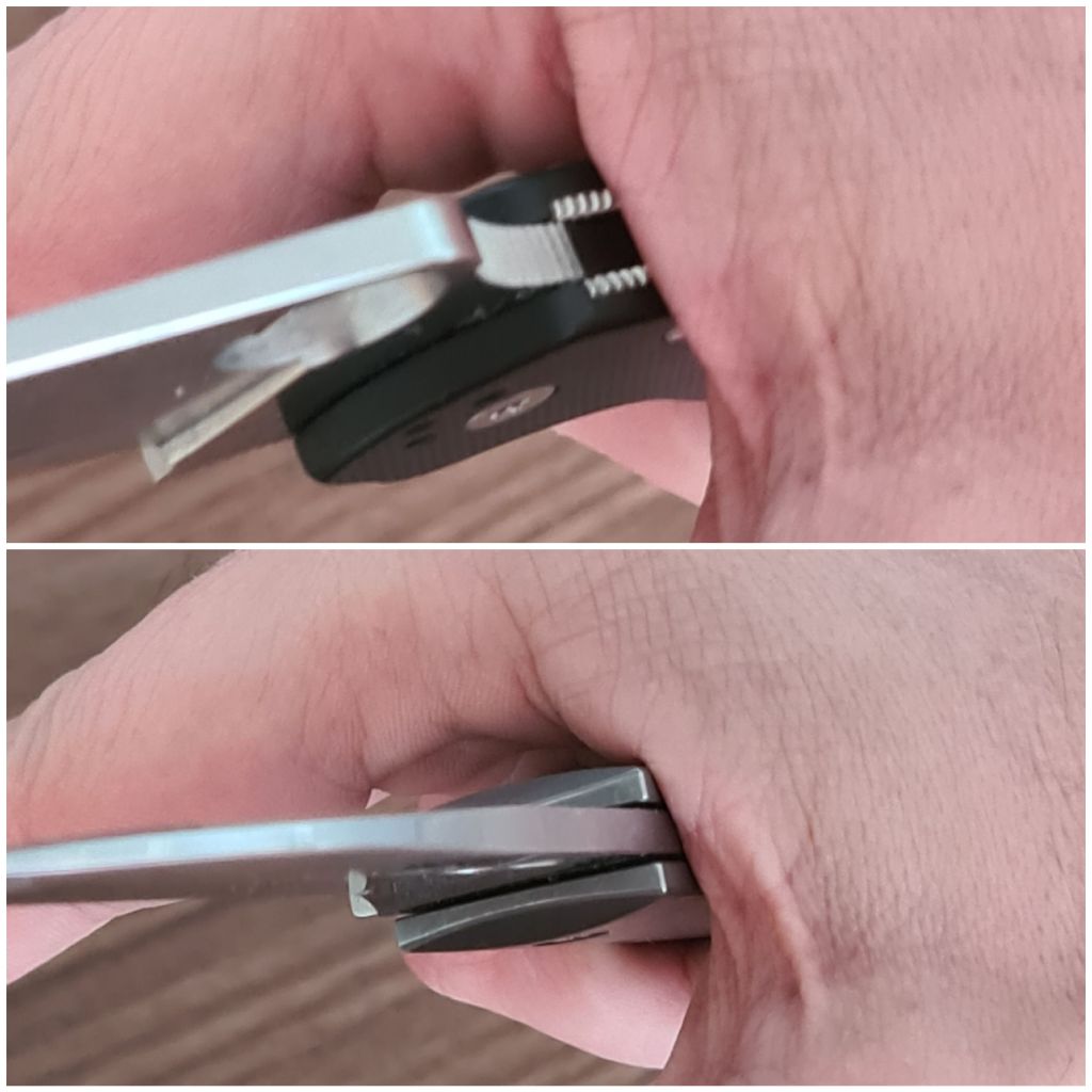 Comparing the handle’s back between the Sebenza (straight) the Spydiechef (bended).