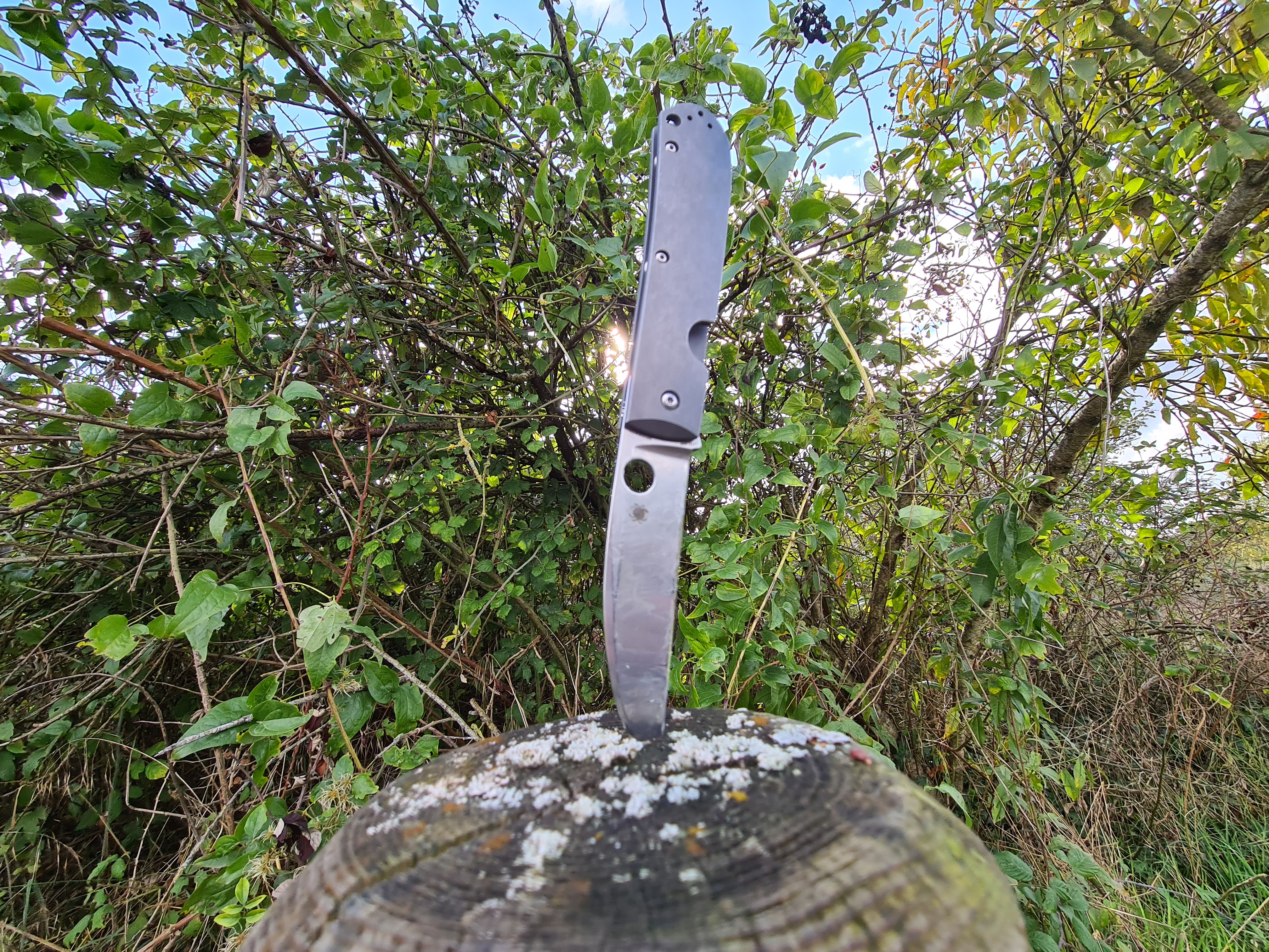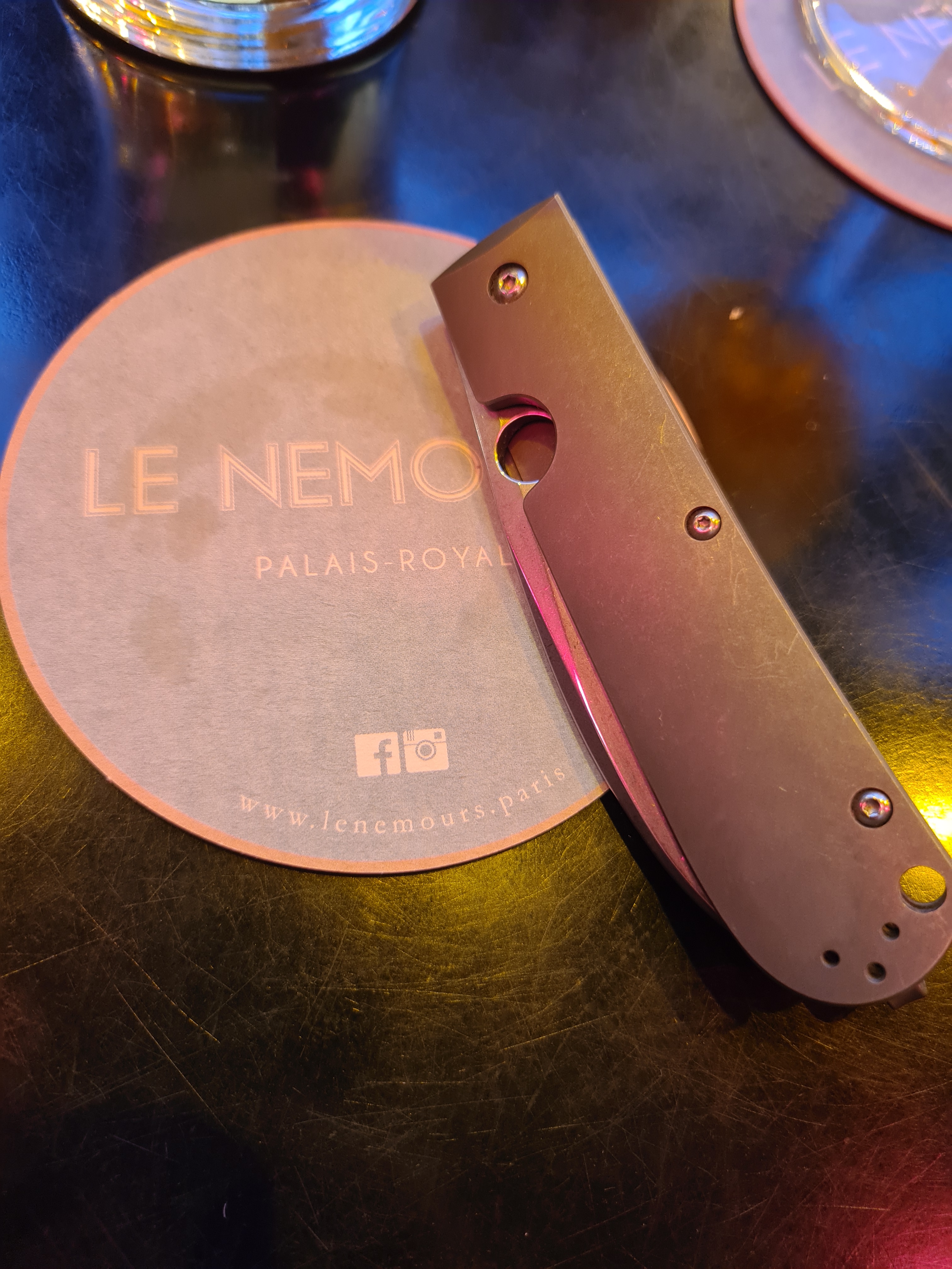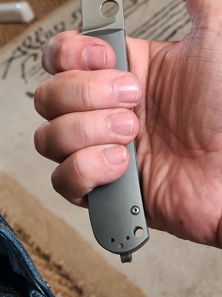 A full titanium handle is really pleasant when you need to clean it and keep it rust free as Titanium cannot rust. The idea of Chris Reeve was brilliant has it offered the possibility even to sterilized your tools.