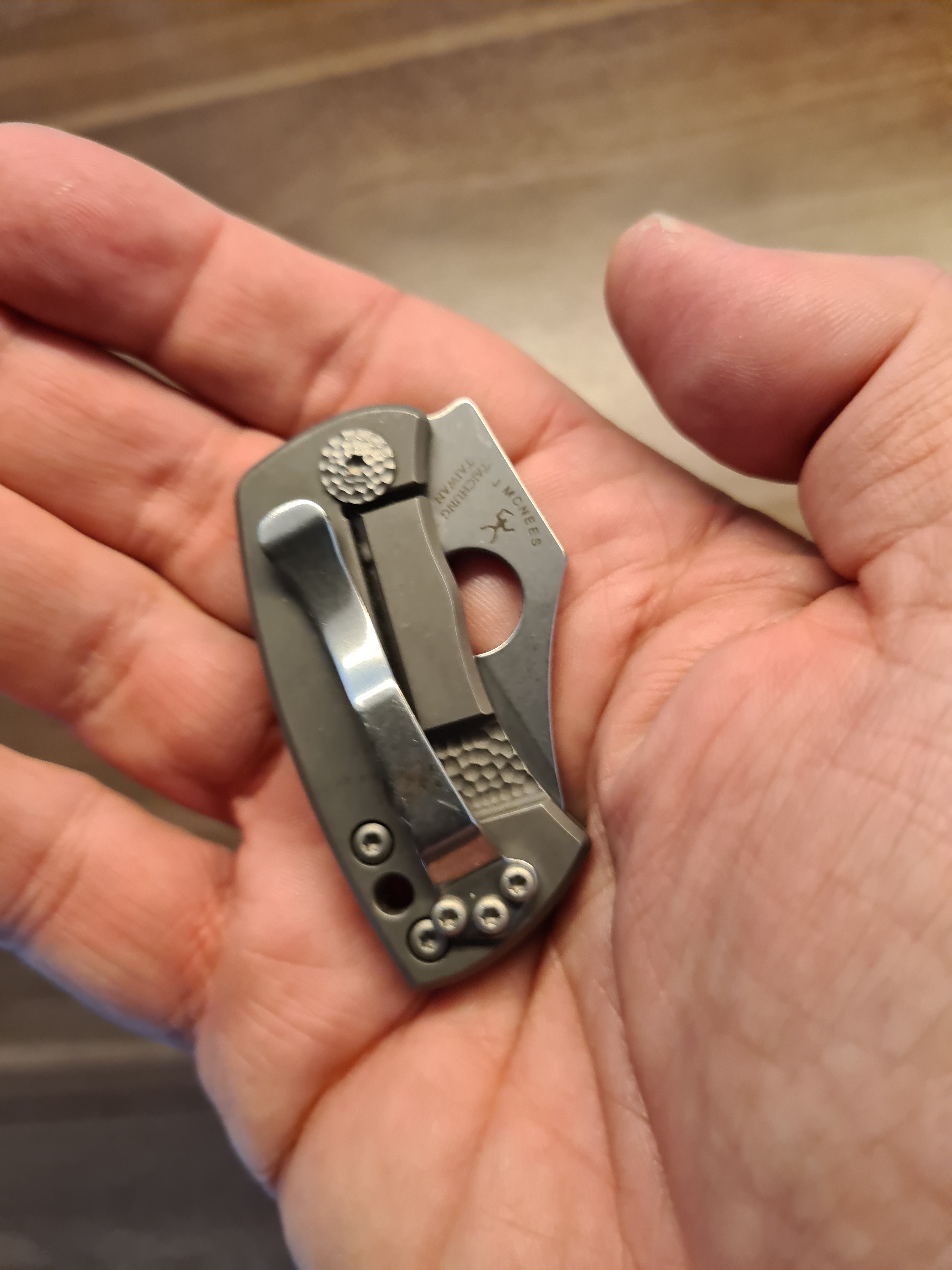 The McBee is one of the smallest Spyderco ever produced but as they said “Proof positive that function is a matter of design, not size.” It is in the Dog Tag size. Jan Dirk has written about his Dog Tag here.