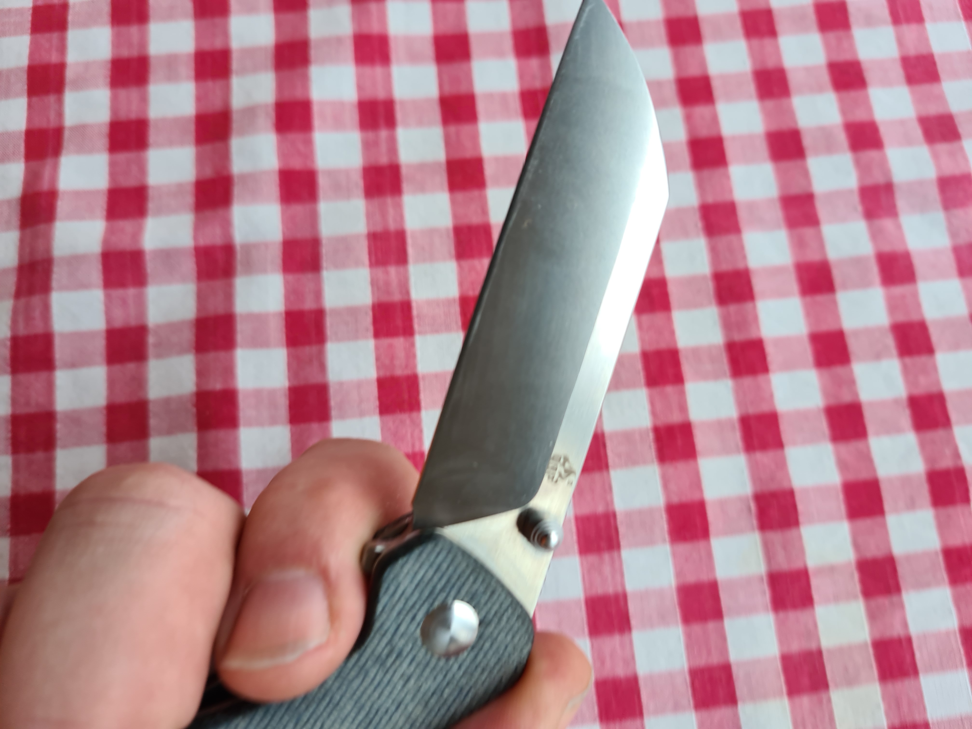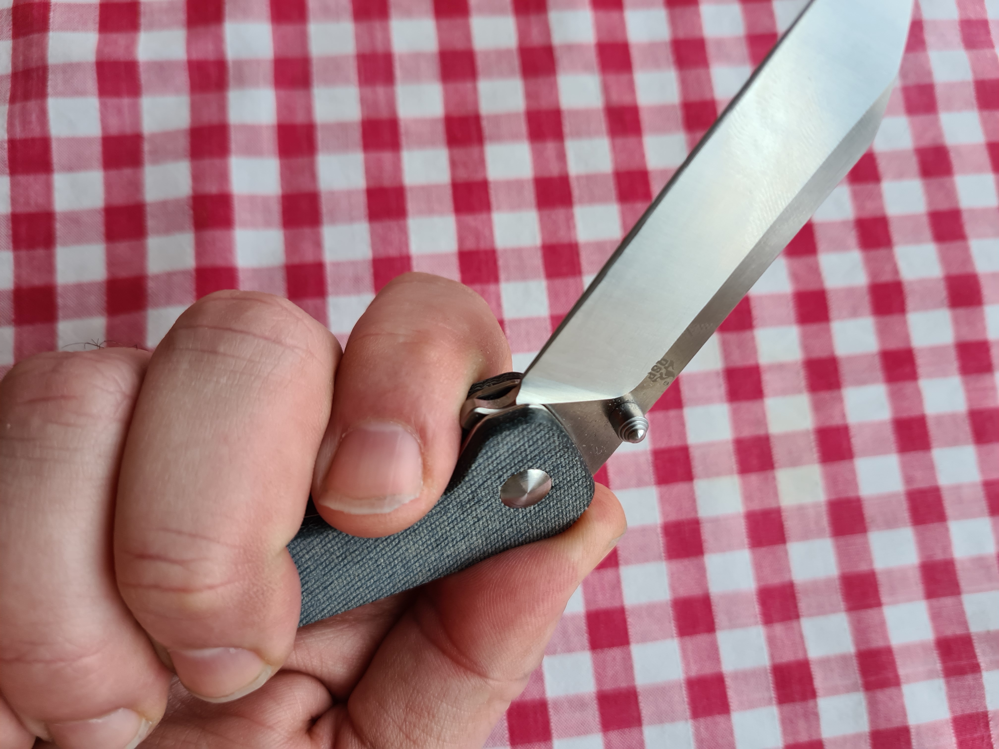 The knife looks very well made. The action is smooth… That denim micarta is so nice !