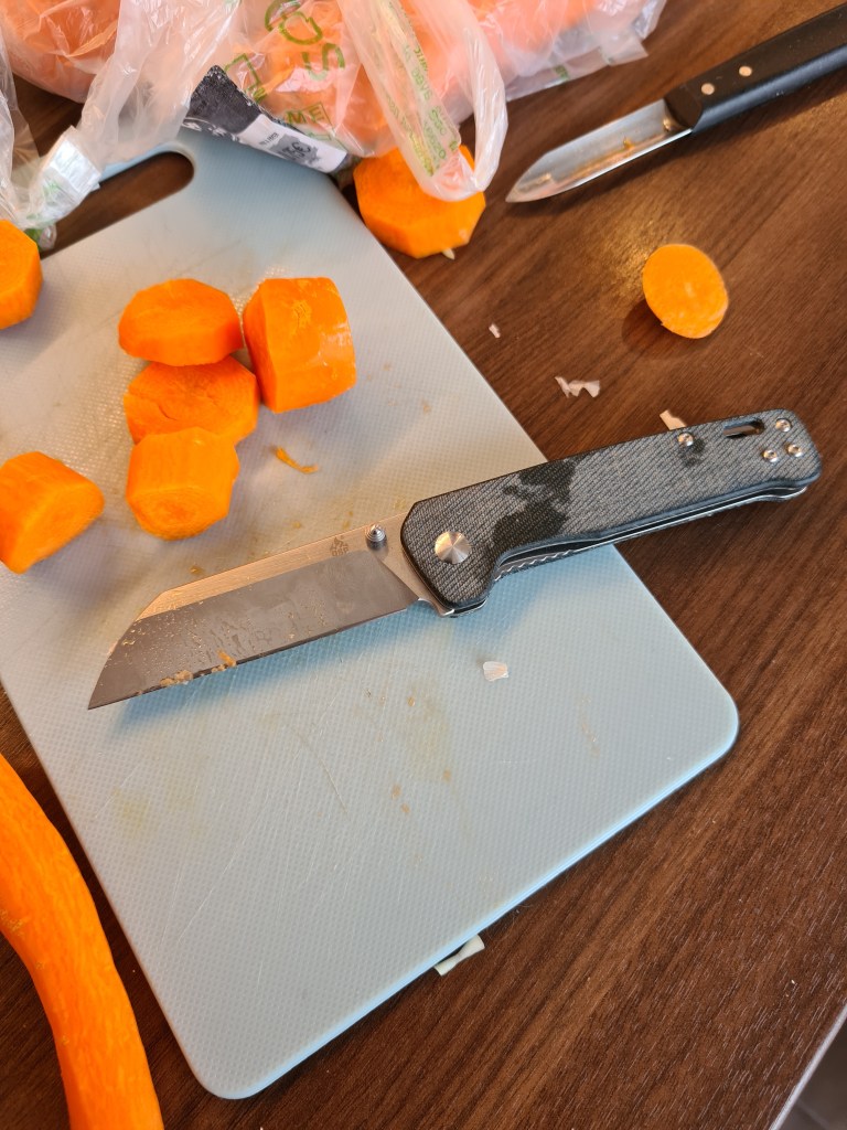 It is a great companion in the kitchen not the best like a Spydiechef but it is honest. It feels great in the hand, a little on the heavy side but it is pleasant. I really enjoy the feel of the micarta. This is really a knife you can use in the garden, in the kitchen, with your toolbox.