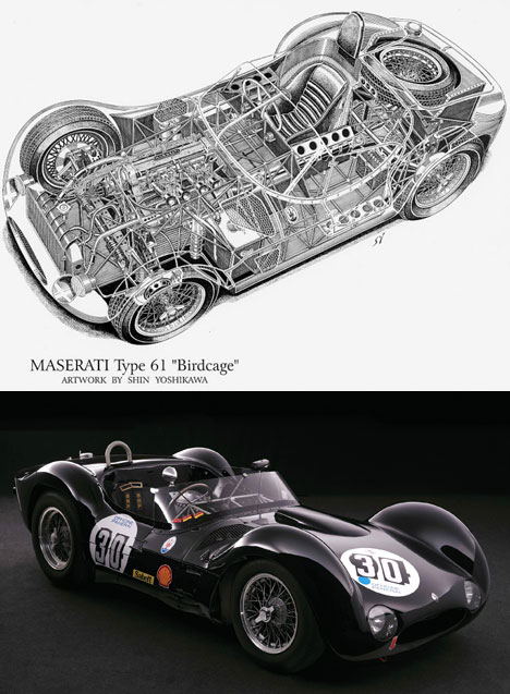 Produced between 1959 and 1961 for privateers competing in endurance racing, including the 24 Hours of Le Mans, the Birdcage was available in 2-litre and 3-litre configurations. Its name came from its revolutionary tubular space-frame chassis, made of roughly 200 chrome-moly steel tubes welded together in triangular formations at high-stress points. This construction method resulted in a chassis that was both lighter and significantly more rigid than anything else on the grid at the time.