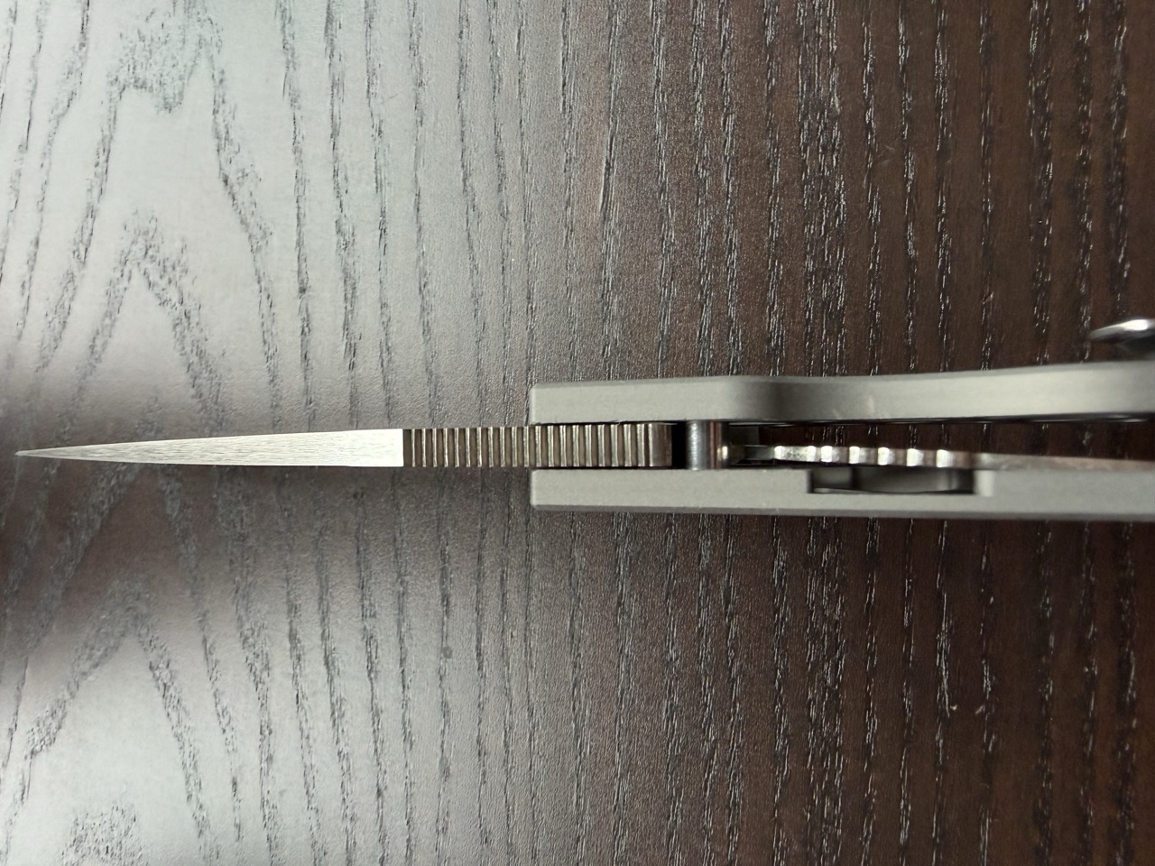 Beauty is, of course, in the eye of the beholder, but this is undeniably a beautiful knife once you get used to that “Eiffel Tower’s effect”. The pictures speak for themselves. It does not project “tactical” vibes; instead, it feels like a refined, high-tech engineer’s cutting tool. I can easily see it appealing to hikers who carefully count every gram they carry. Its versatility could also attract cyberpolice officers, climate change firefighters, alien hunters—and even starship troopers, for whom weight savings are critical, like astronauts. That may explain why it is also available in a full-black, partially serrated configuration. It is a toolish delicacy. A very capable solid reliable lightweight tool. Very very light and powerful !!