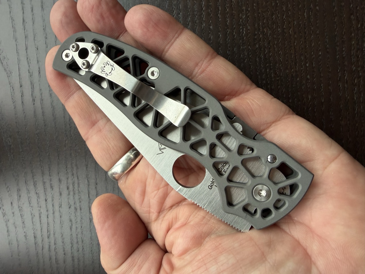 This is not Sal’s first attempt at creating an ultra-light, all-metal folding knife. I remember his “R” model, for instance.