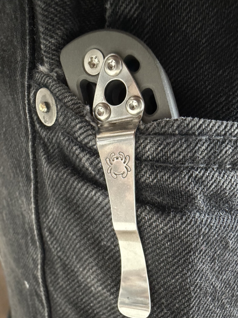 If there is one aspect I am not entirely happy with so far, it is the pocket clip. It’s the same heavy-duty style clip found on models like the Shaman, the Tenacious or the Lil’ Temperance. This means the knife sits proud in the pocket, and replacing the clip with a third-party option is not straightforward. On my sample it is also not particularly easy to slide in and out of the pocket. I’ll see later how—or if—I can improve this by slightly bending it.