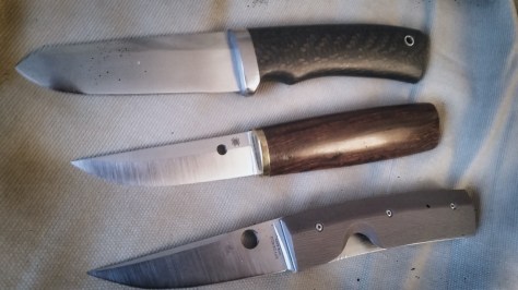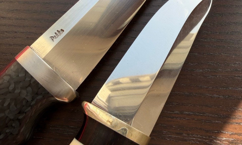 Tuominen forges Silversteel and 52100, as well as his own Damascus from 15N20 and 1090. Stainless steels such as RWL34 are ground rather than forged. In every case, he performs the heat treatment himself.