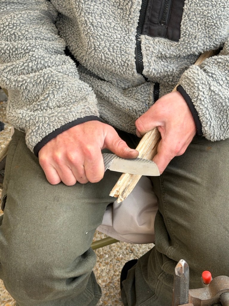 A thick spine, yet a remarkably fine cutting geometry. Along the upper section, the rasp’s triangular teeth remain intact, untouched — not as ornament, but as a deliberate act of preservation.
