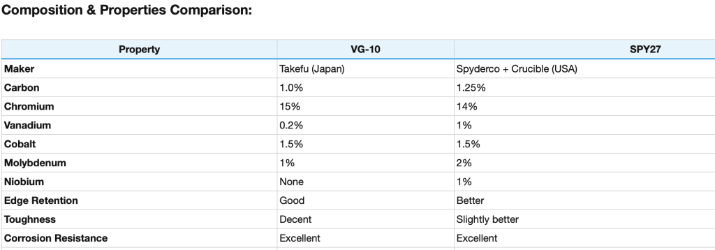 CPM Spy27 is not merely another powdered metallurgy alloy; it is an insider’s composition, born from collaboration and conviction. Developed as a proprietary formula, Spy27 was conceived as a modern evolution in performance stainless steel—often described as a powdered metallurgy answer to the spirit of VG-10, yet unmistakably contemporary in its balance of edge retention, corrosion resistance, and toughness. Engineered through Crucible’s particle metallurgy process—before the company’s bankruptcy reshaped the landscape—it stands as the product of a singular joint venture and a fleeting industrial moment.