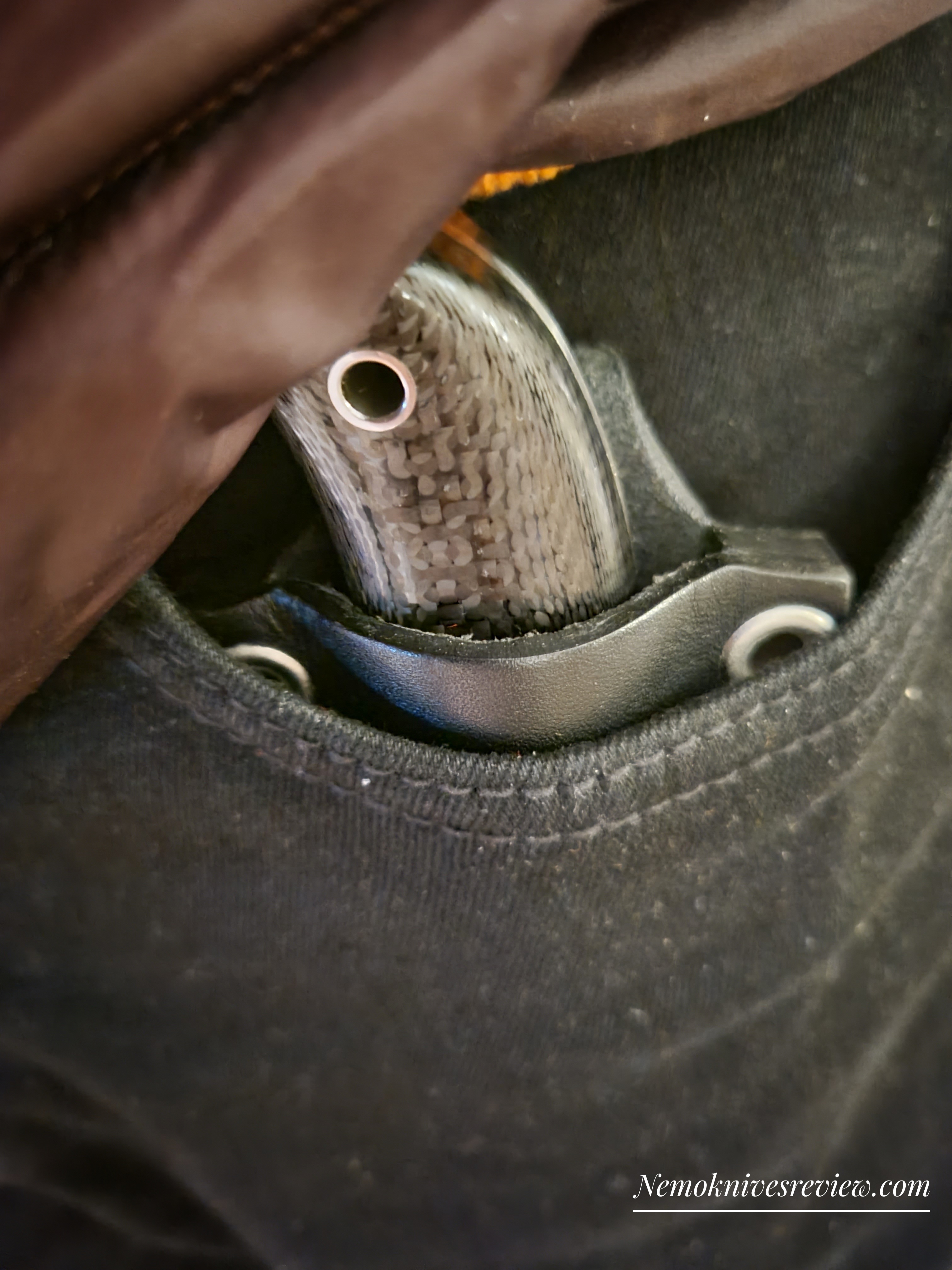 The knife snuggles perfectly inside the pouch you can pass in a belt.