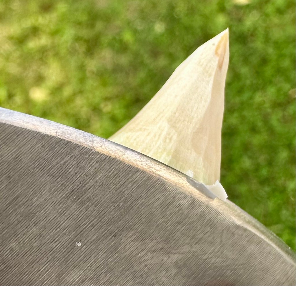 Apart from a single trip into the woods, I’ve mostly used the Lil’ Temp in the kitchen, where it’s been steadily building a nice patina. I’ve also taken the opportunity to test its ergonomics with wet hands. The FRN handle pattern is one of Sal Glesser’s great innovations: it gives the knife a no-nonsense, tool-like appearance while ensuring the handle stays locked in place once gripped.
