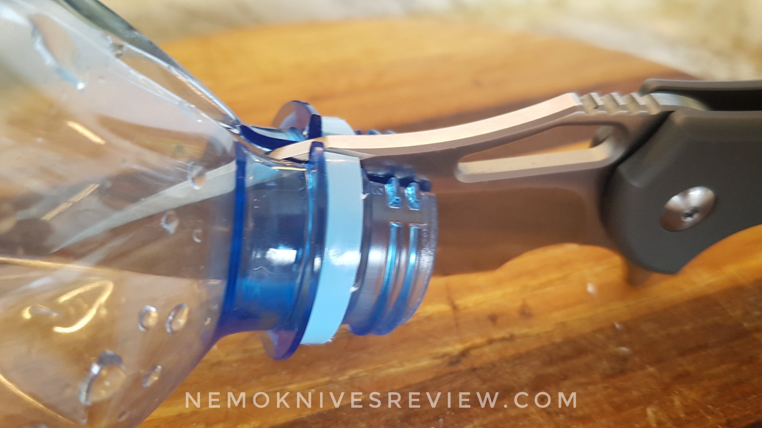 And once convexed the edge was able to cut through the 4mm plastic butt of a 2 liters Coke bottle. Excellent !!