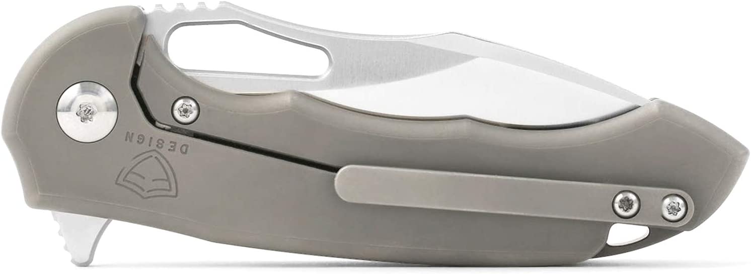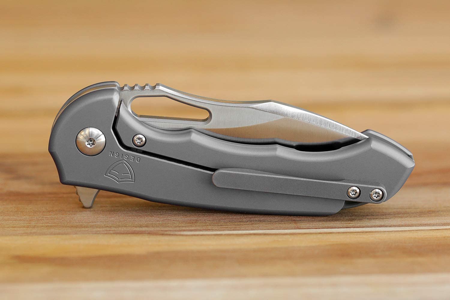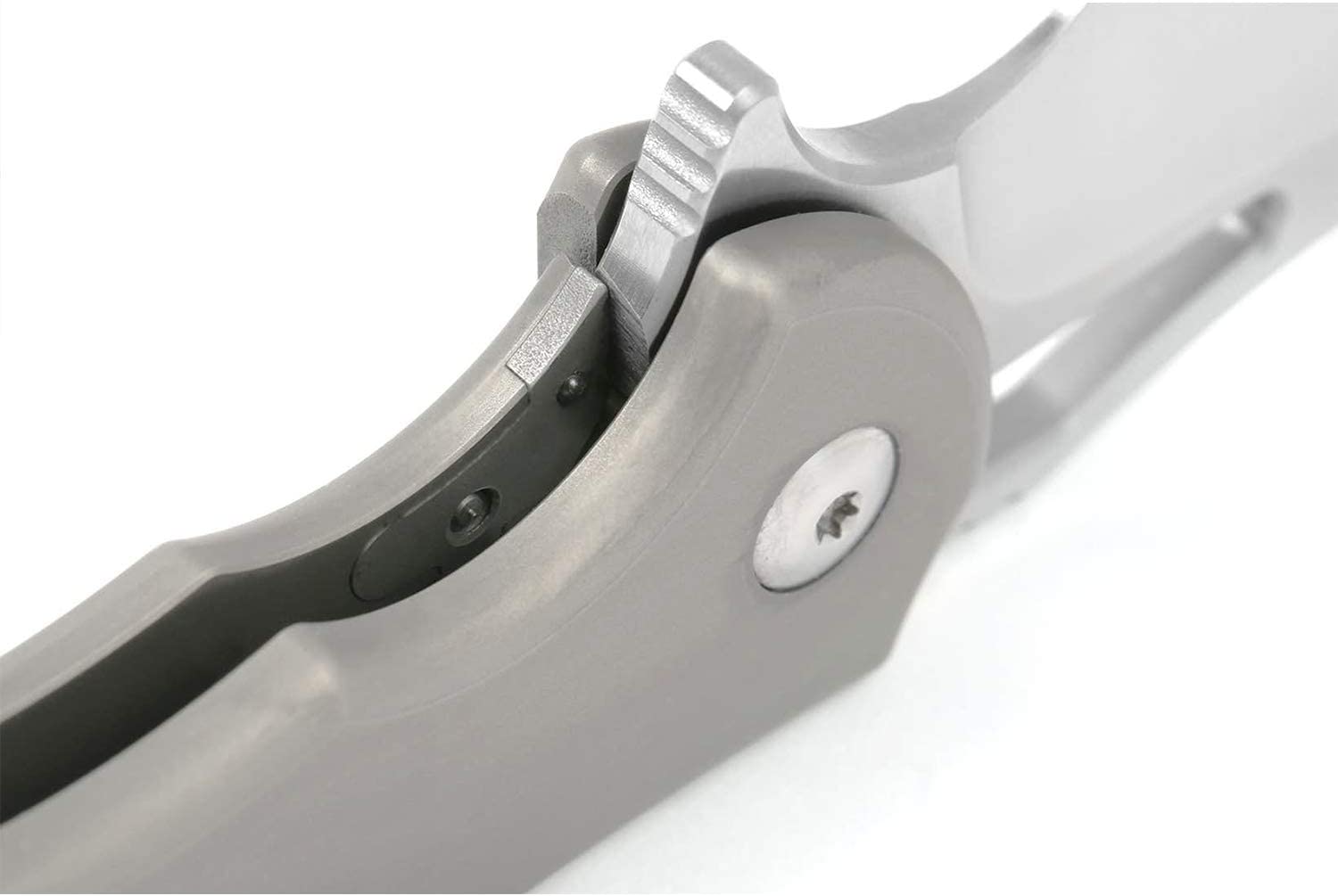 • SOLID TITANIUM HANDLE: The 6AL4V titanium handle is both lightweight and strong. Bead-blasted to a smooth gray finish, it perfectly complements the satin blade. The matching titanium clip is reversible for righties and lefties.