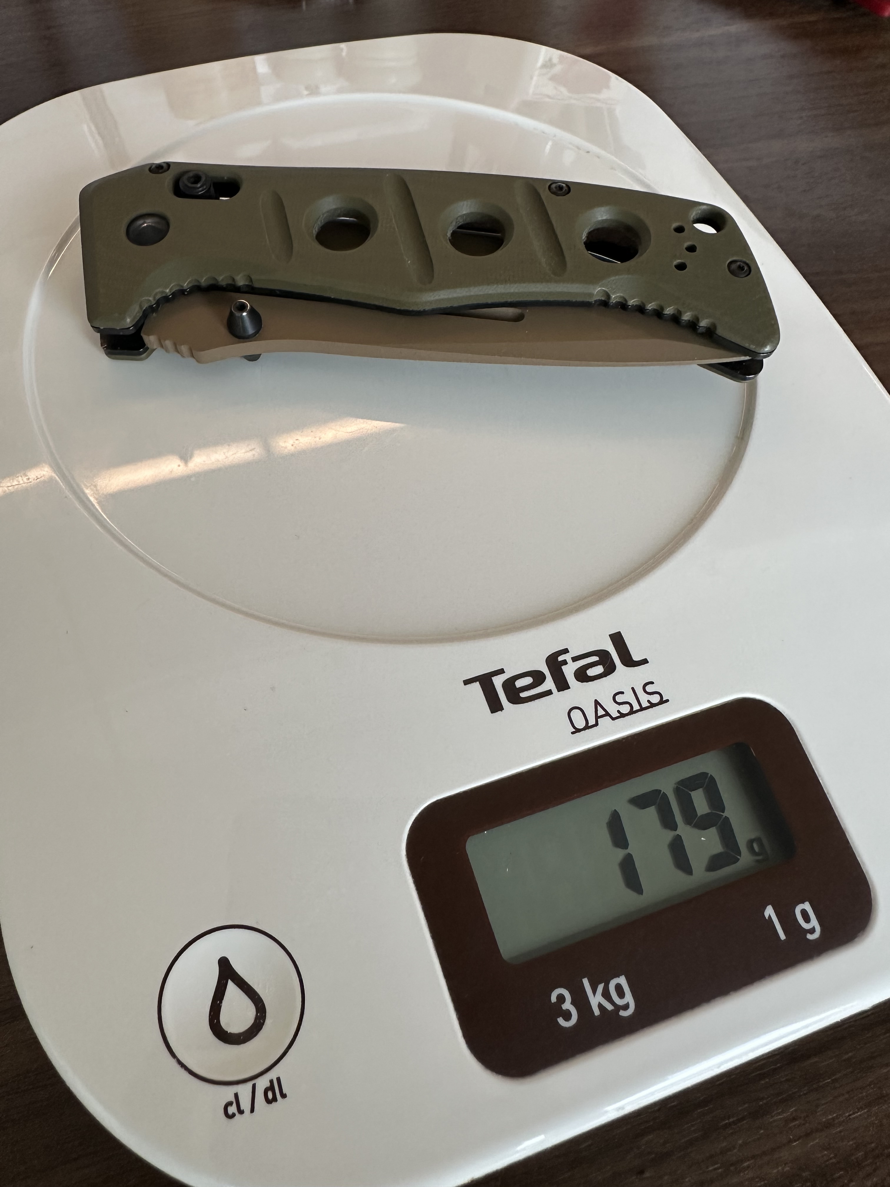 “The stainless steel liners that form the foundation of the lock are larger, giving the knife increased structural strength and anchoring its four-position pocket clip, which is configurable for left or right-side, tip-up or tip-down carry. “ OK but comparing the weight between the C36 (128g) and the C36-2 (124g) the Military 2 is 4 grams lighter. (114 grammes on my kitchen scale !)