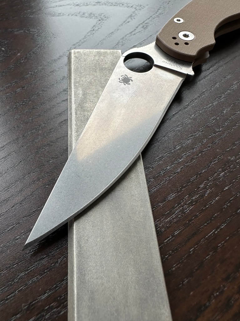 Again I’m not focusing on getting it sharper it but just to polish the edge and remove any scratches. I want a better geometry like I use to have on the Para3 in M390.