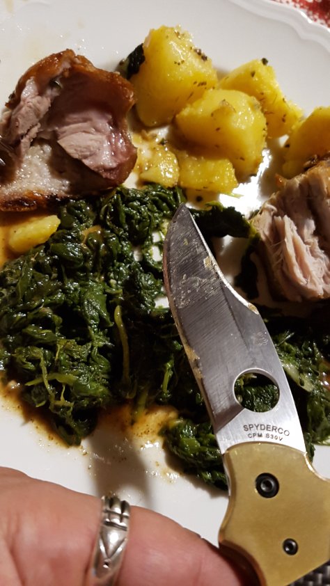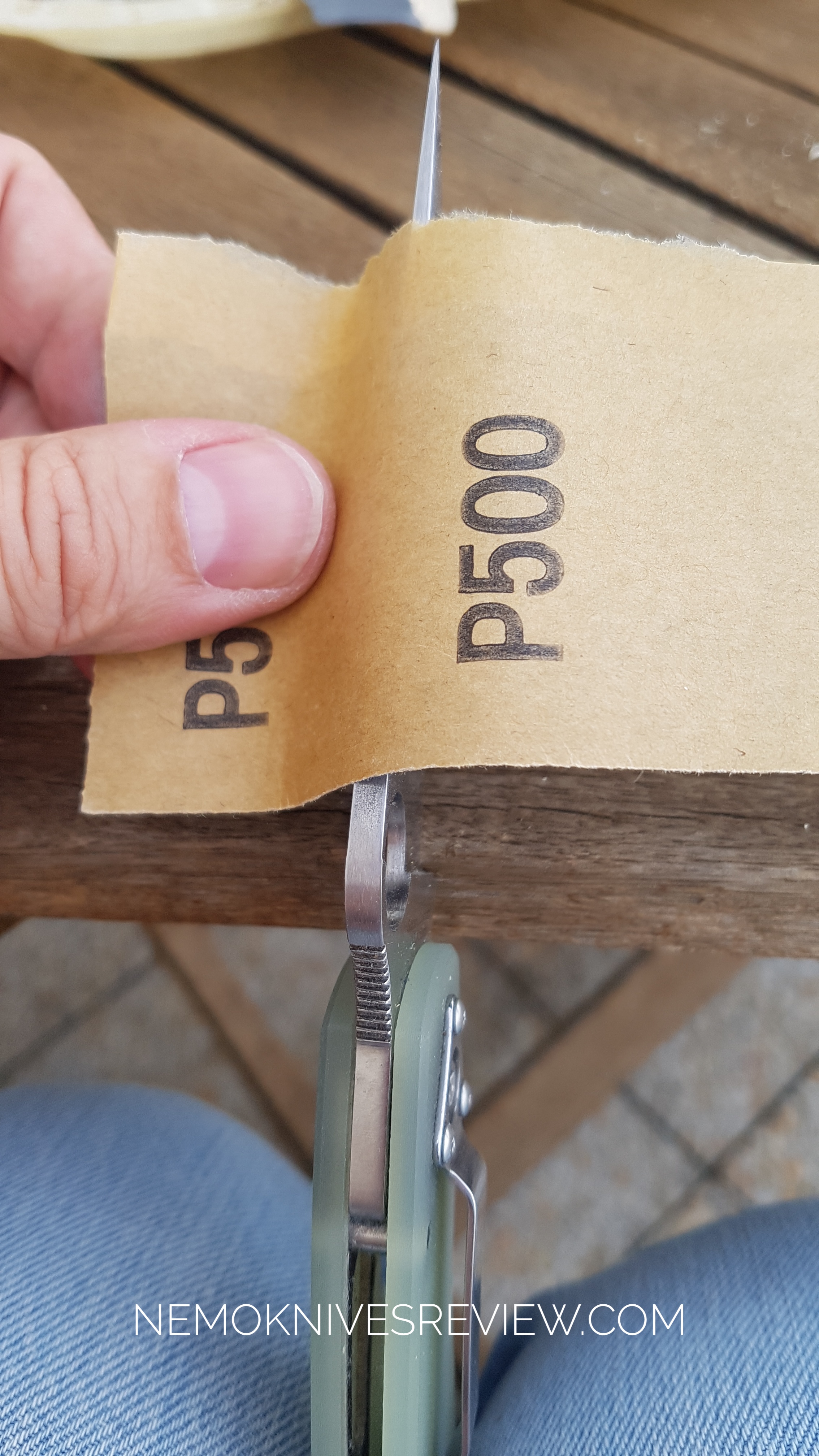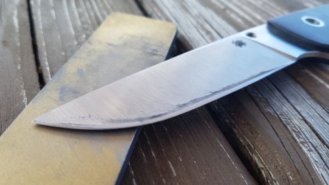 To my knowledge, SPF27 is some kind of CPM D2 steel. A lot of carbon 1.5% and not a lot of chromium around 12%. Not the easiest on the stone as a semi stainless. It was not very soft under the diamonds compared to another blade in N690 HRC59 I got with me. And it was not really easy to remove the shoulder to create a gentle convex edge. Patience… In sharpening is important. And I often lack of it but I was able to improve it.