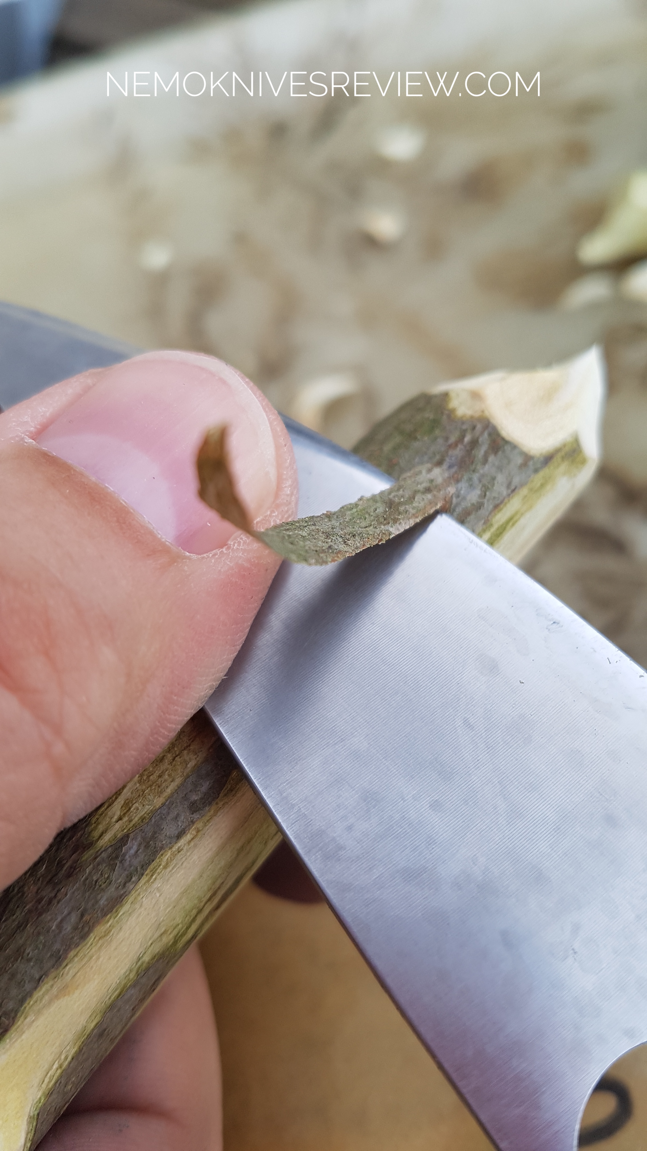 Back in the outside I was thinking of a simple way to see the “impact” of good geometry on whittling. On the right, a single cut if the thin Delica and, on the left, a single cut of the thicker