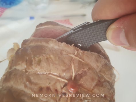 On plastic and wood, I have twisted the blade inside and no harm has been noticed to the edge or the mechanism. I have used it hard at full grip and got full confidence in it in hammer or reverse grip. Like on the other compression locks knives it’s so easy to close it and put it back in the pocket, preventing any way to harm yourself or the others. It is especially great when working around animals like horses for example, when you want your edge to be out of play as soon as possible.