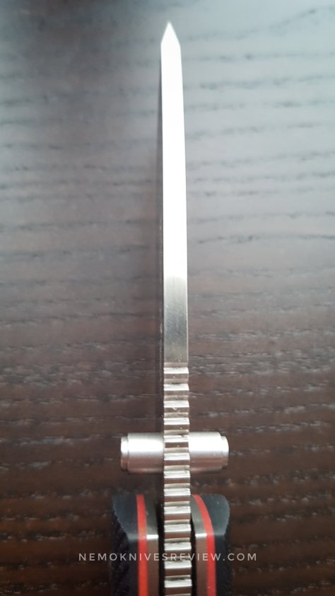 The lock is a thick Michael Walker’s liner lock and it reminds me of the one on Spyderco Gayle Bradley; thick liners locks are easy and confortable to use. Here the steel liners are heavily skeletonized to reduce weight and keep a great balance.