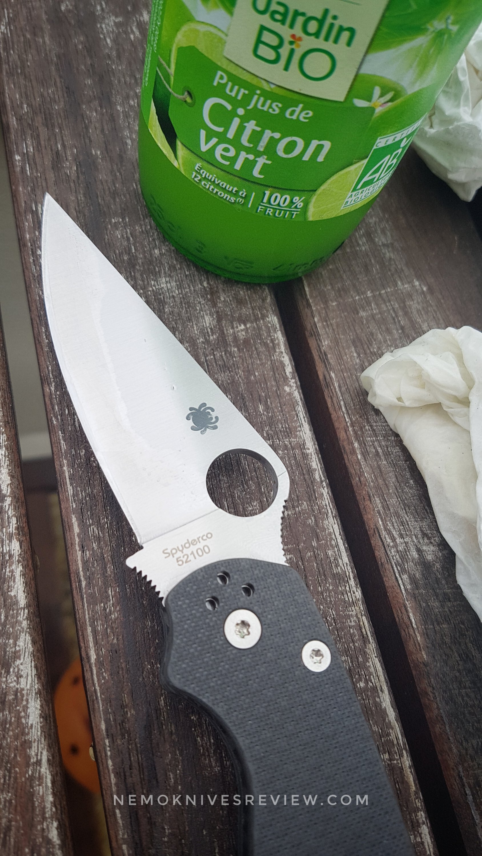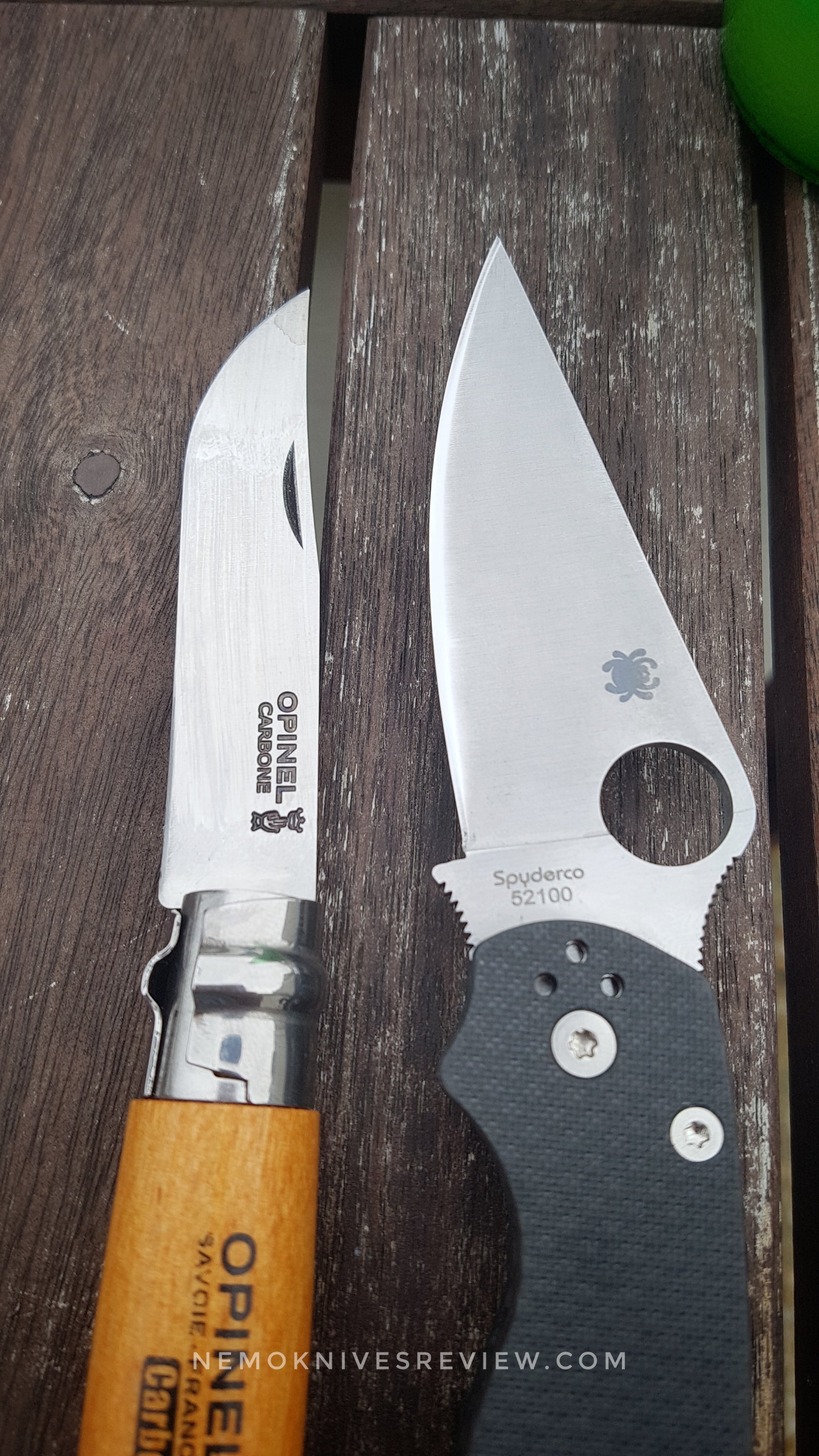 For good measure I wanted to compare how a 1075 carbon steel Opinel and that 52100 knife will react to the lemon juice.