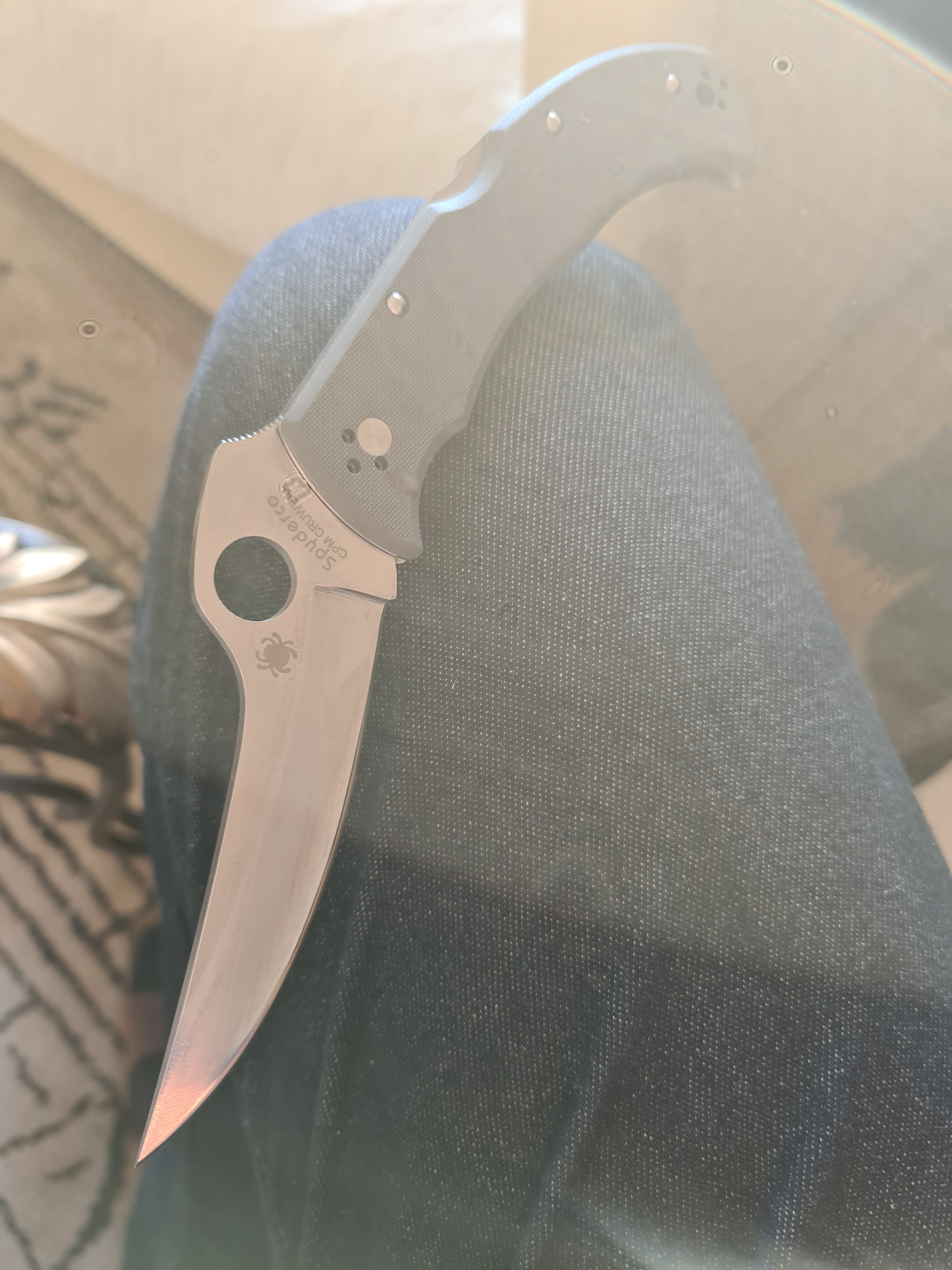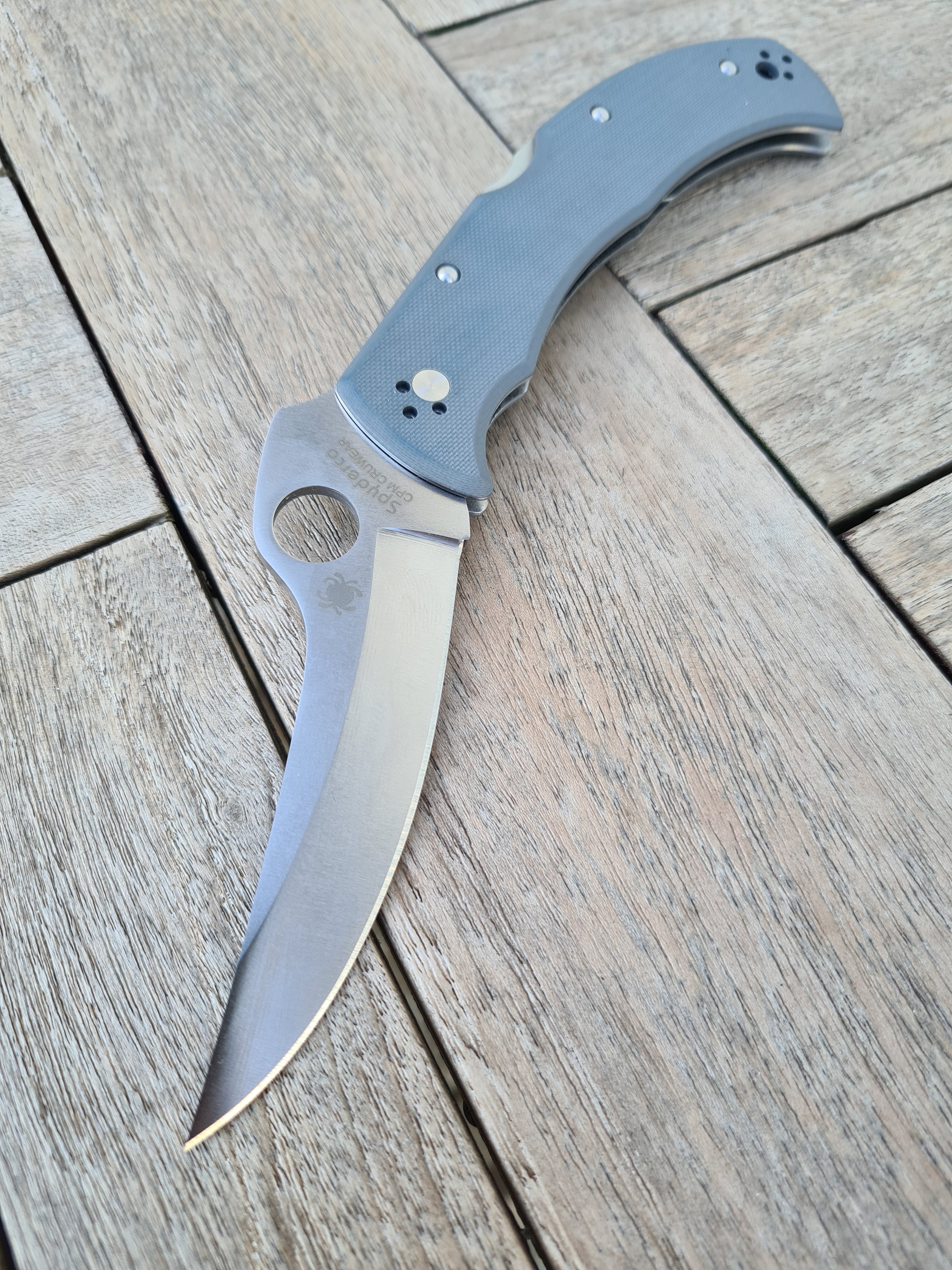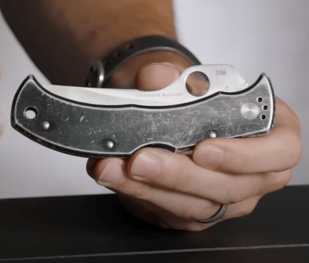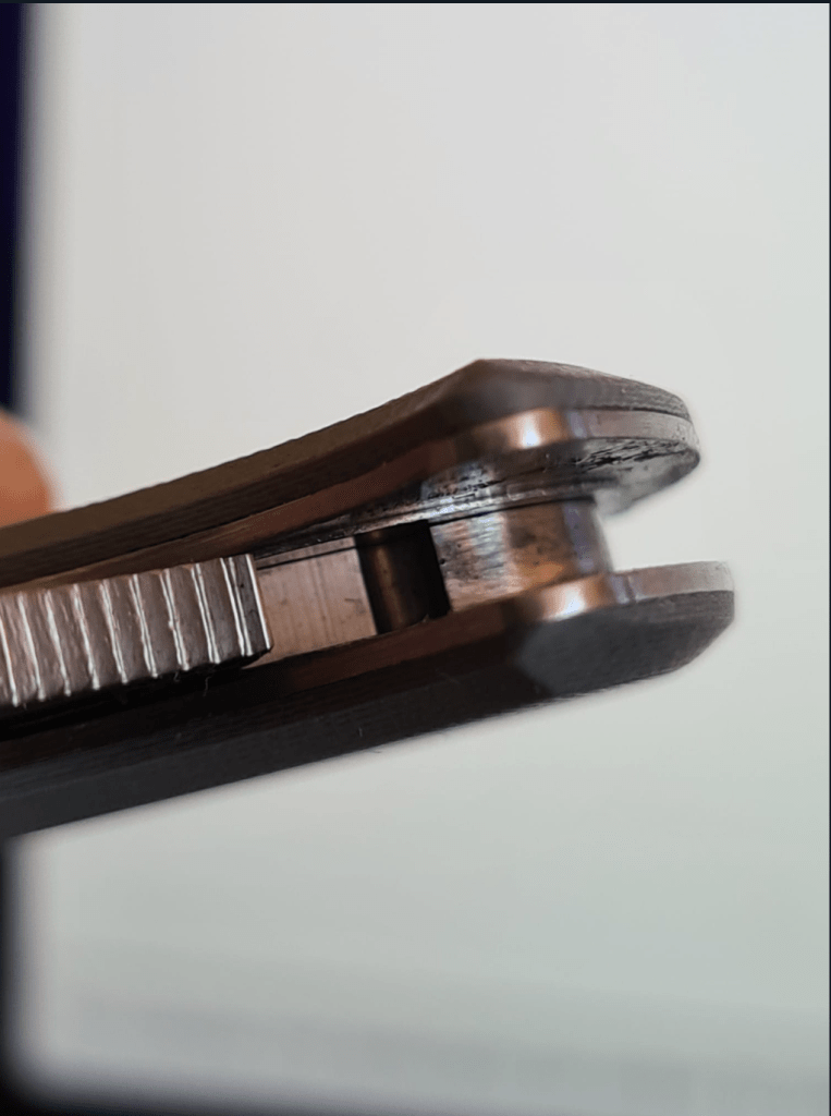 The opening arc is a little wider on this one due to the placement of the hole a little far from the axis but the Spyderflick is easily done. It is fidget pleasant folder ! I don’t think it is good for tip down carry and “spyderdrops” as the guard is a little to wide. But for tip up carry and middle finger’s flips, it is perfect.
