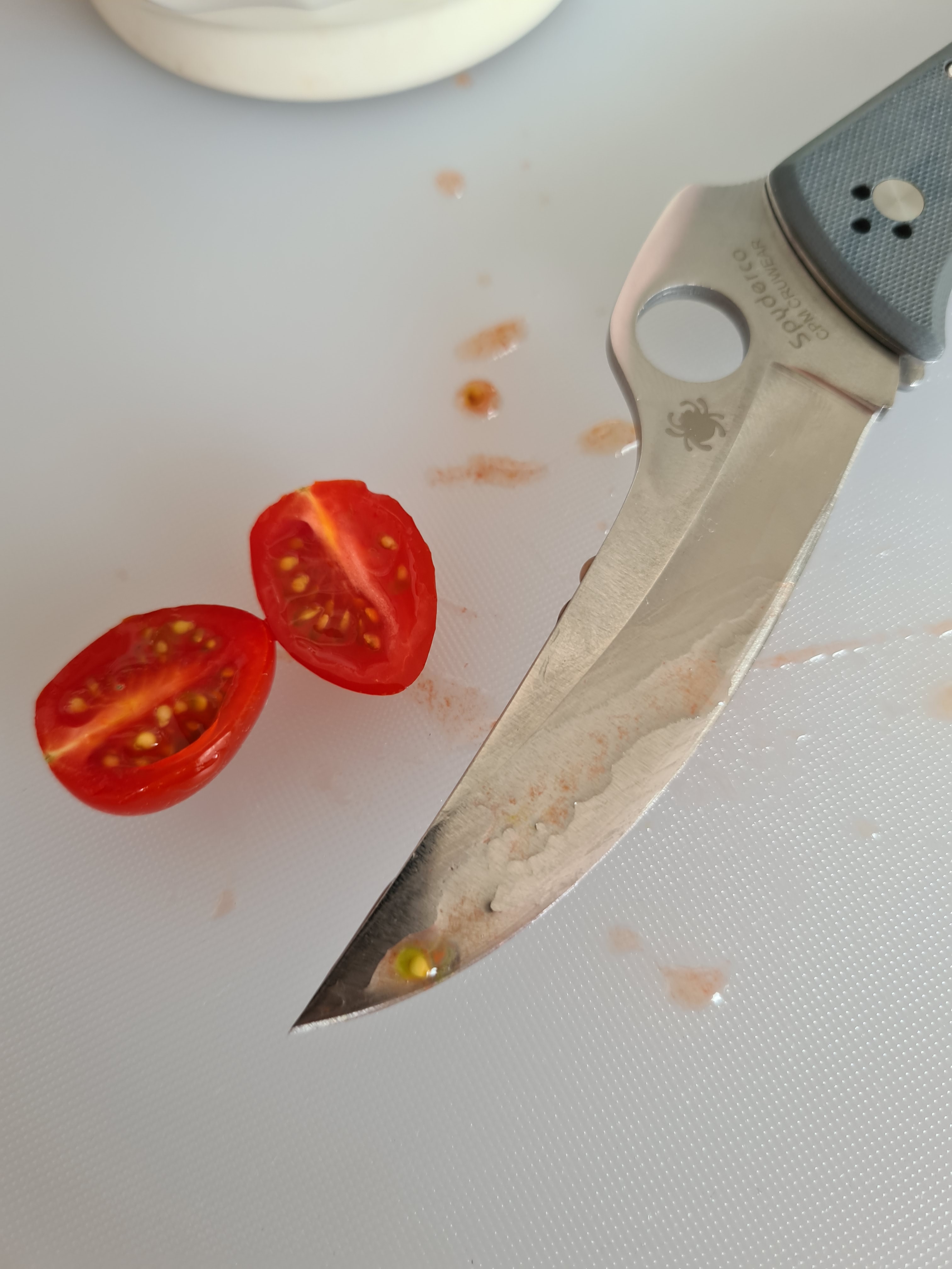 I noticed a small nick on the out-of-box factory edge. No big deal — it happens, especially since the knife had just been “chipped” to France. 😉
