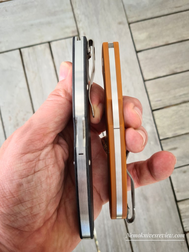 I’m not a huge fan of the hour glass clips founded on the Native 5 and the Delica/Endura/Paramillie/Para3. It has been immediately replaced mine with a Blade4sell small titanium clip.