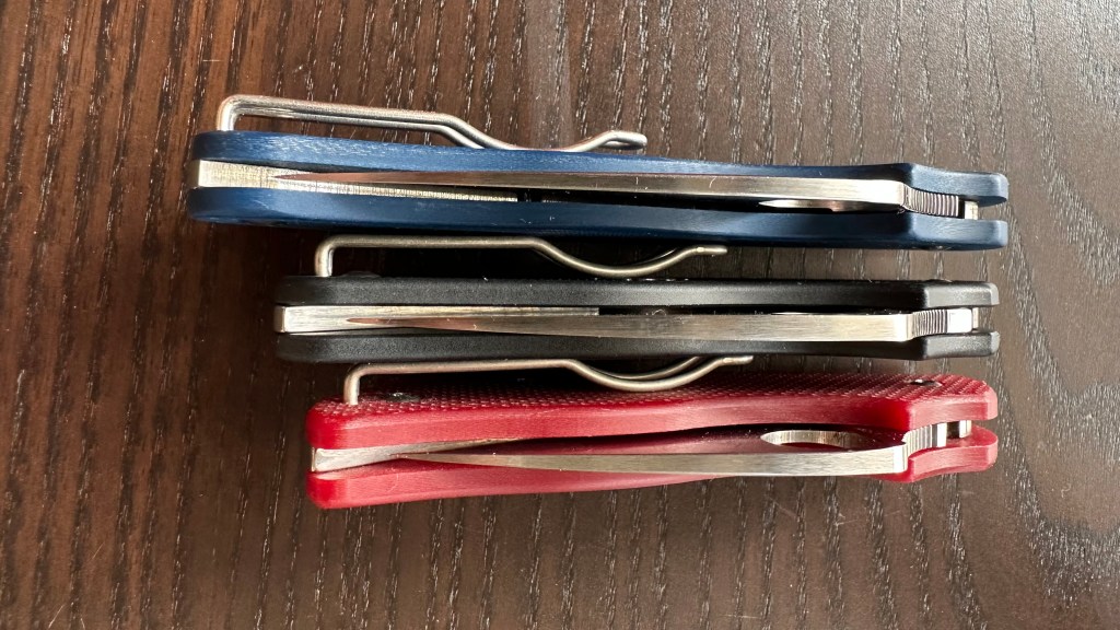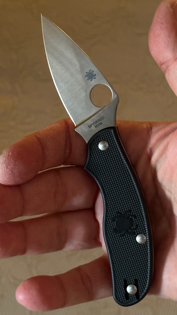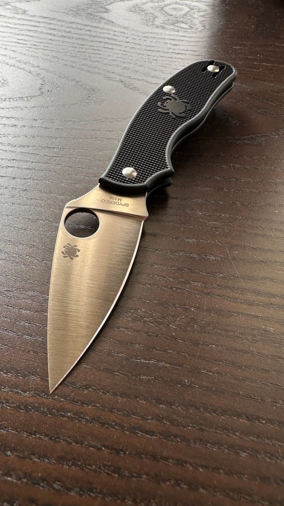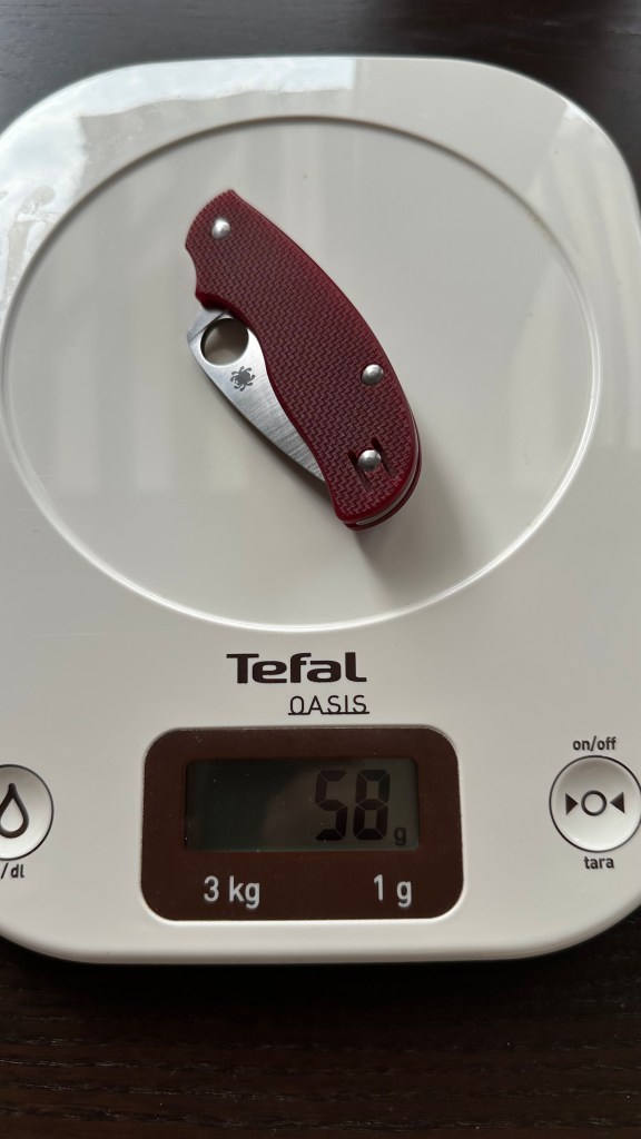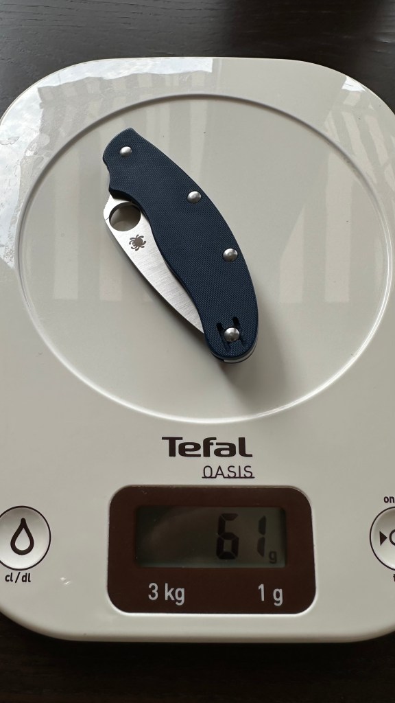 This relatively long folder is remarkably light: 88 grams for a 102 mm blade — 21% lighter than the G10 version, according to Spyderco.