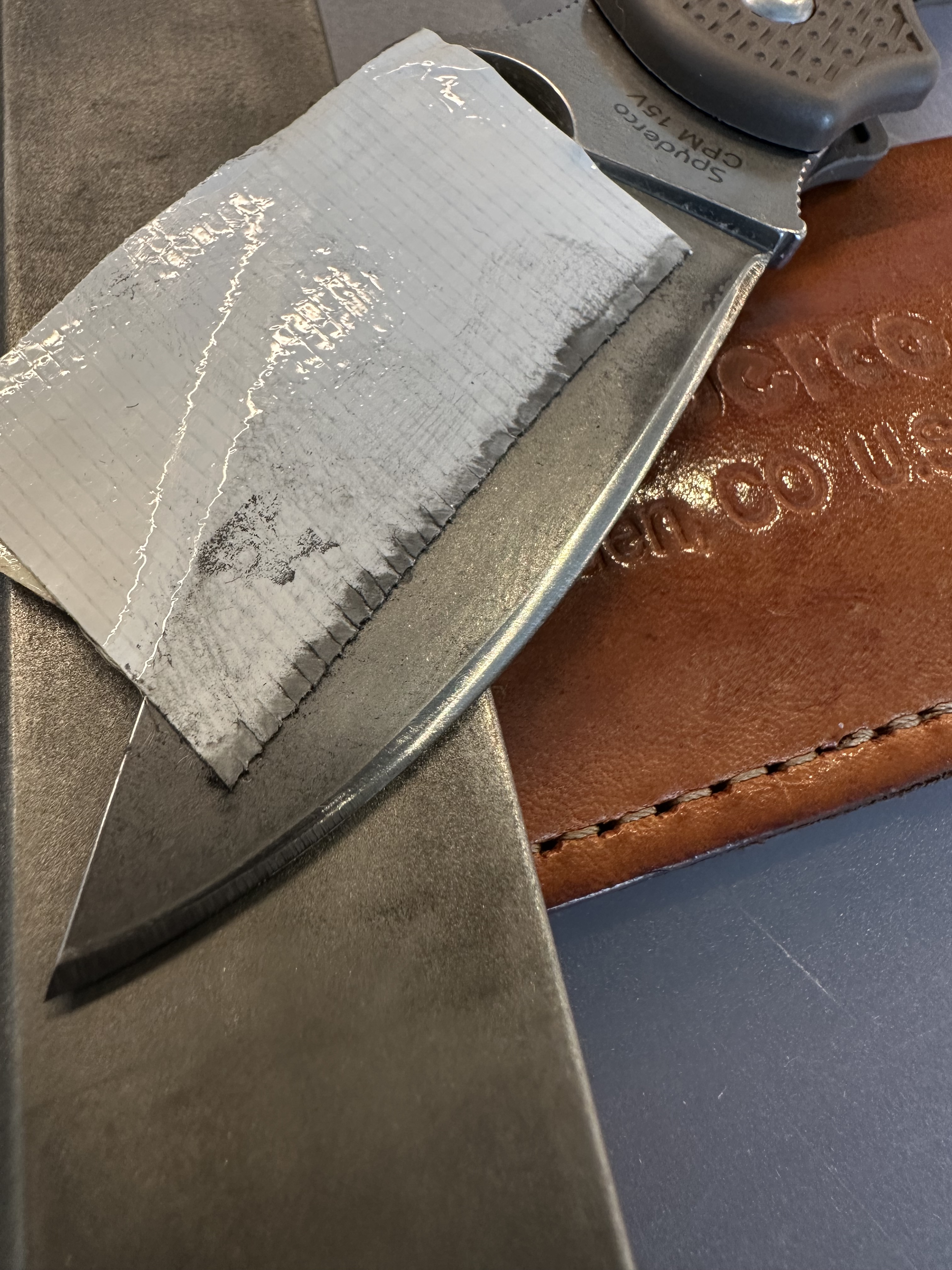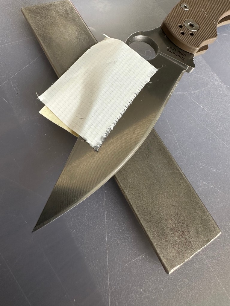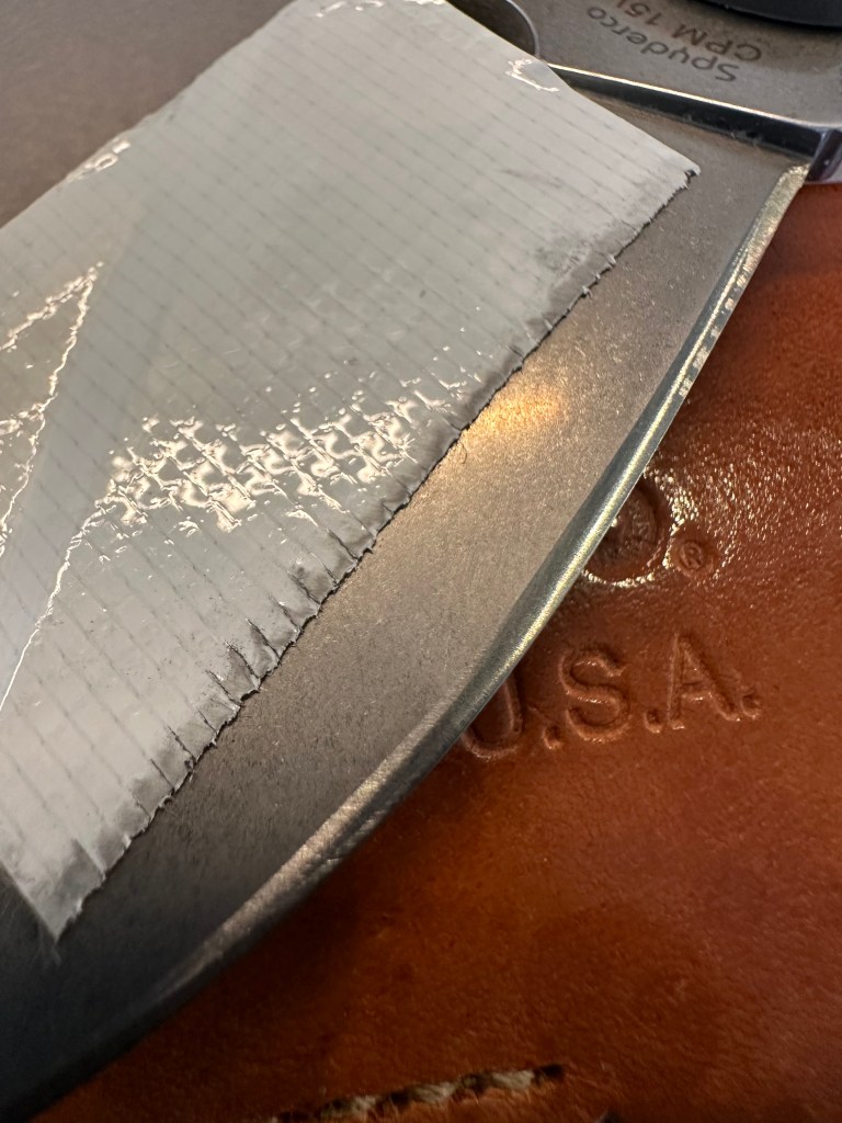 The gaffer tape trick is smart: it saves you from accidental slips while keeping the grind line safe. And yes, the 204D diamonds are hungry — they bite into ZDP-189 without hesitation, which also means they’ll scratch anything that touches them. But like you said, a working knife will earn its scars.
