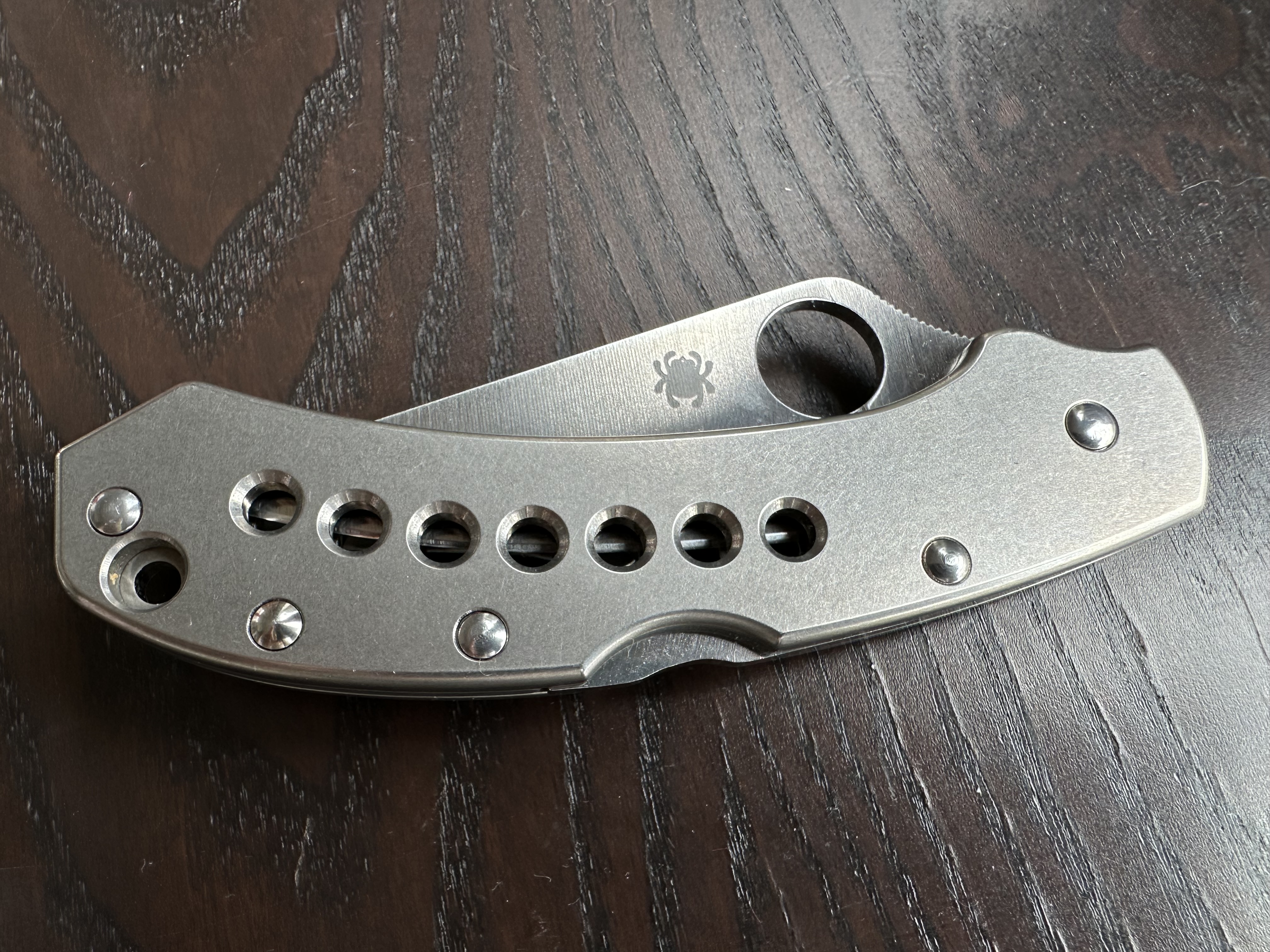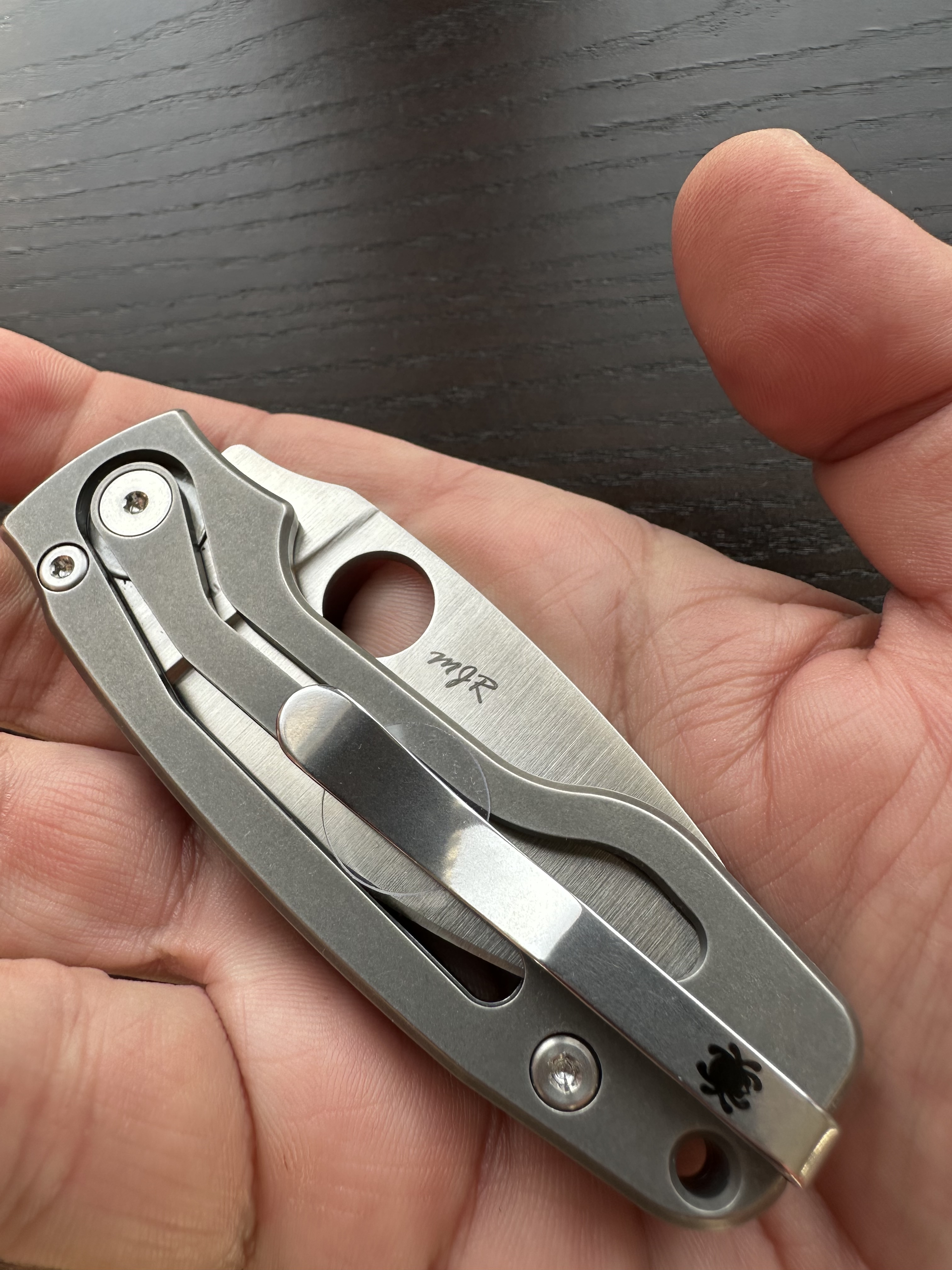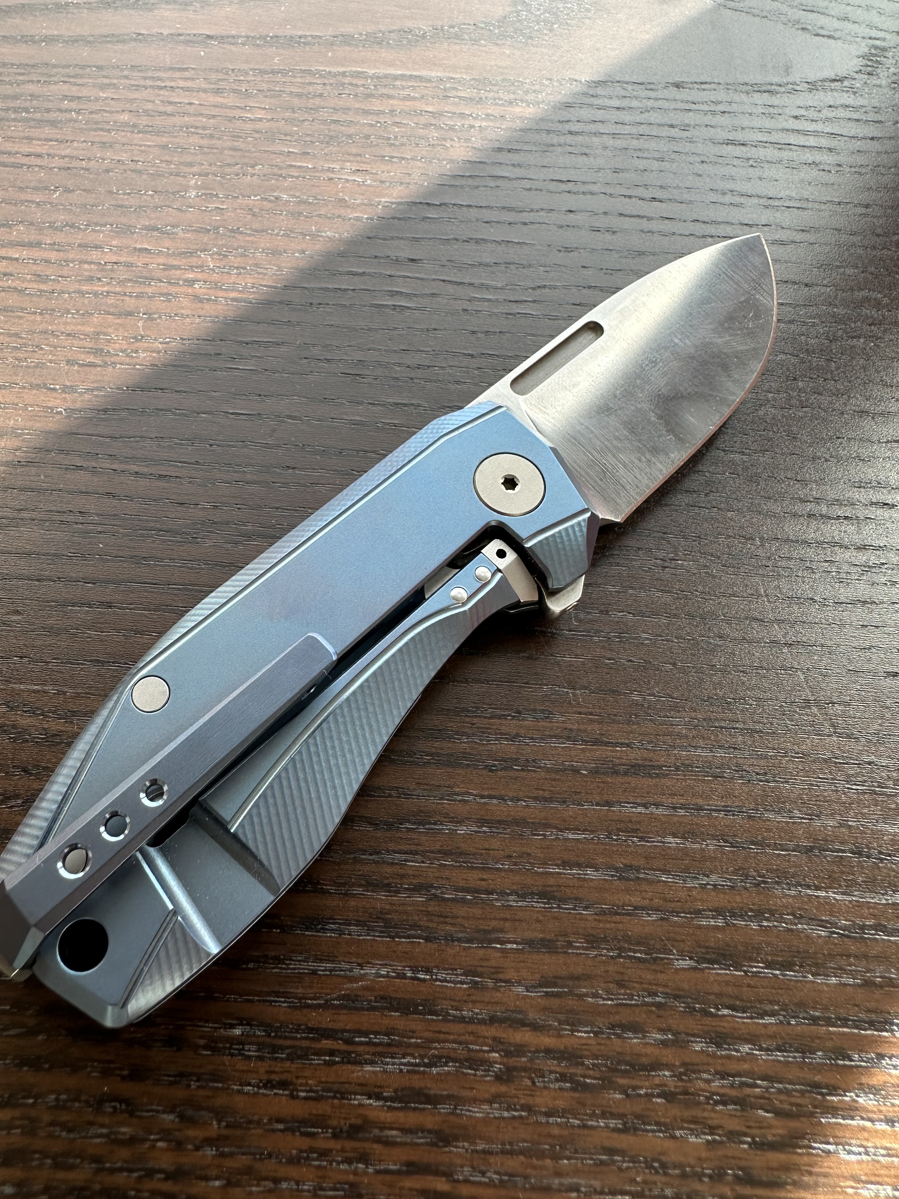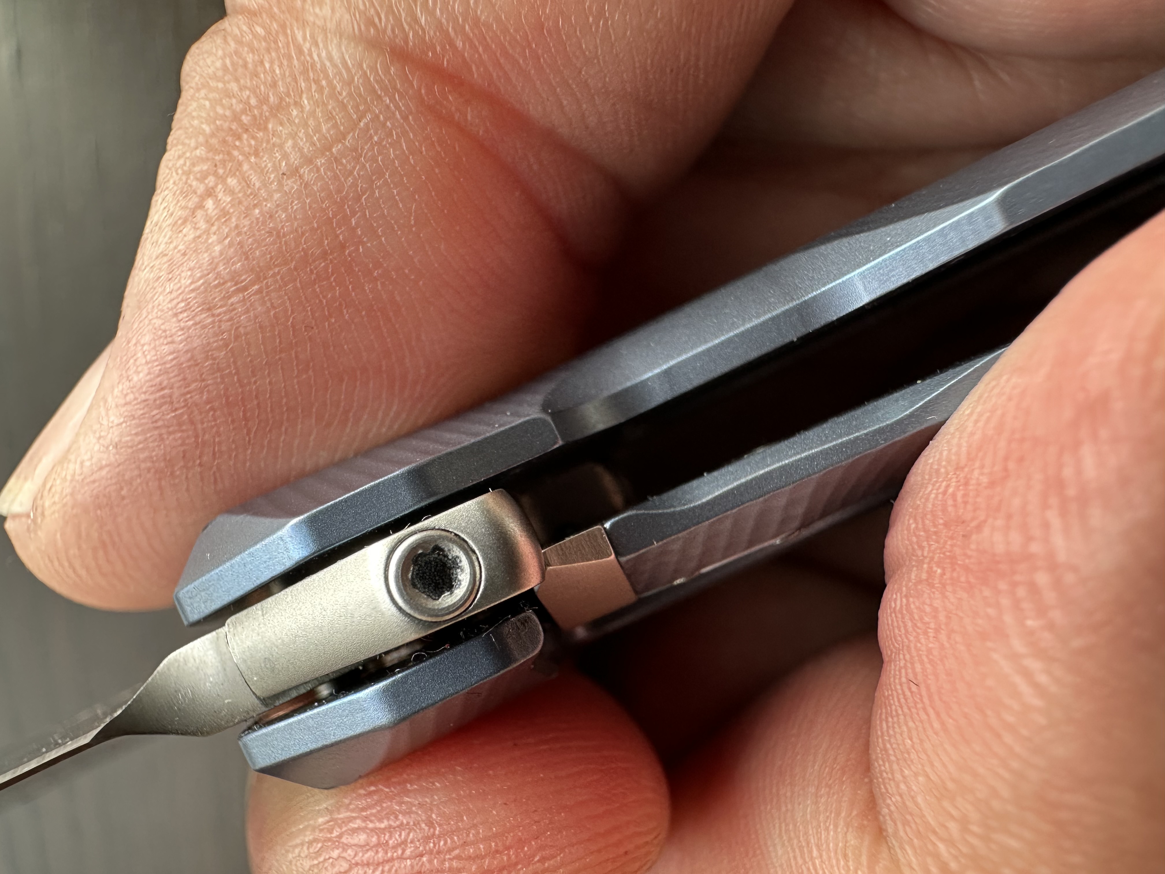 I can appreciate how skeletonized hidden liners have added lightness and strength to folding knives, but they also tend to become little nests for rust. For that reason, I really appreciate it when liners are DLC‑coated — and even better when they’re made of titanium.