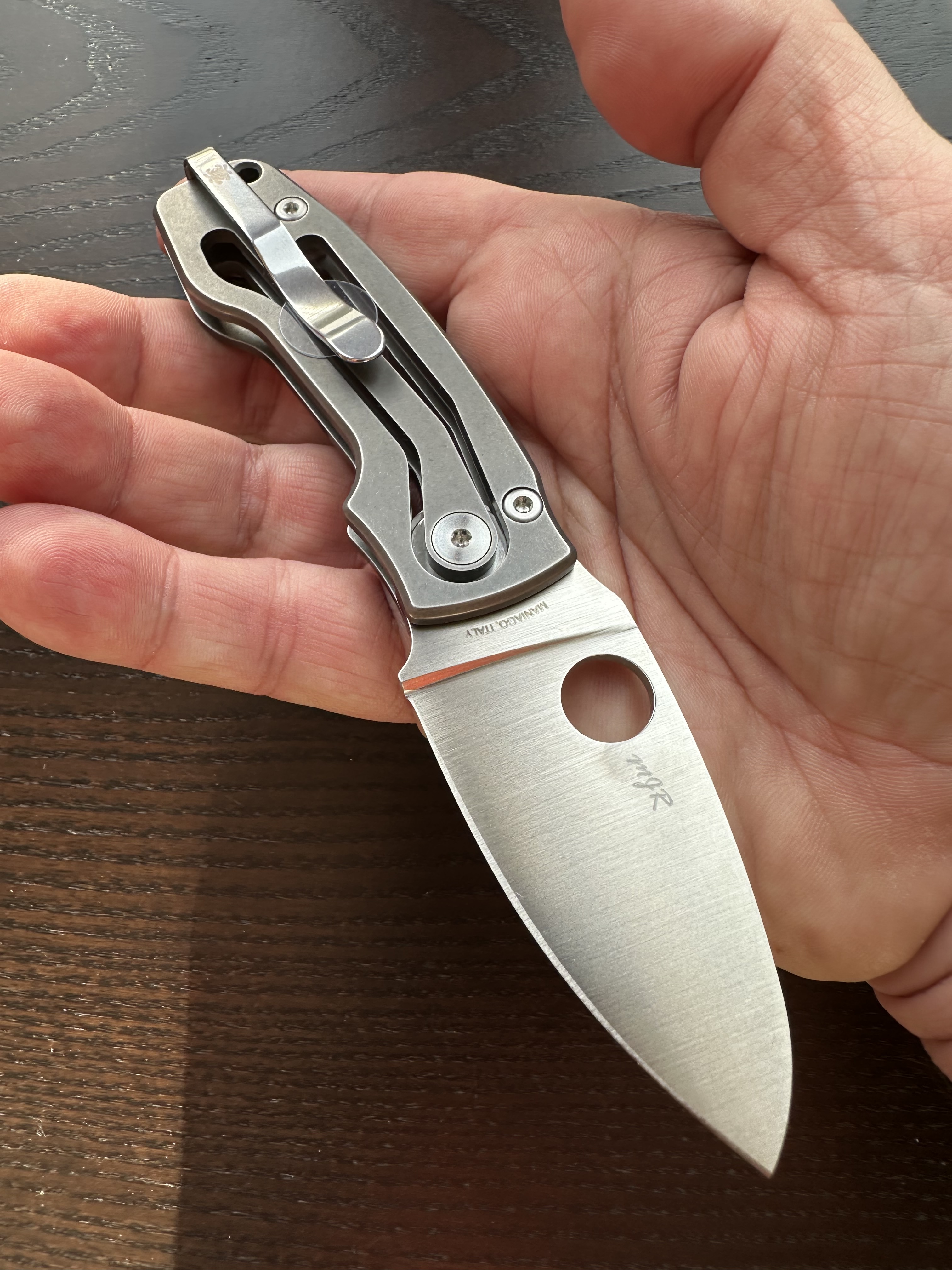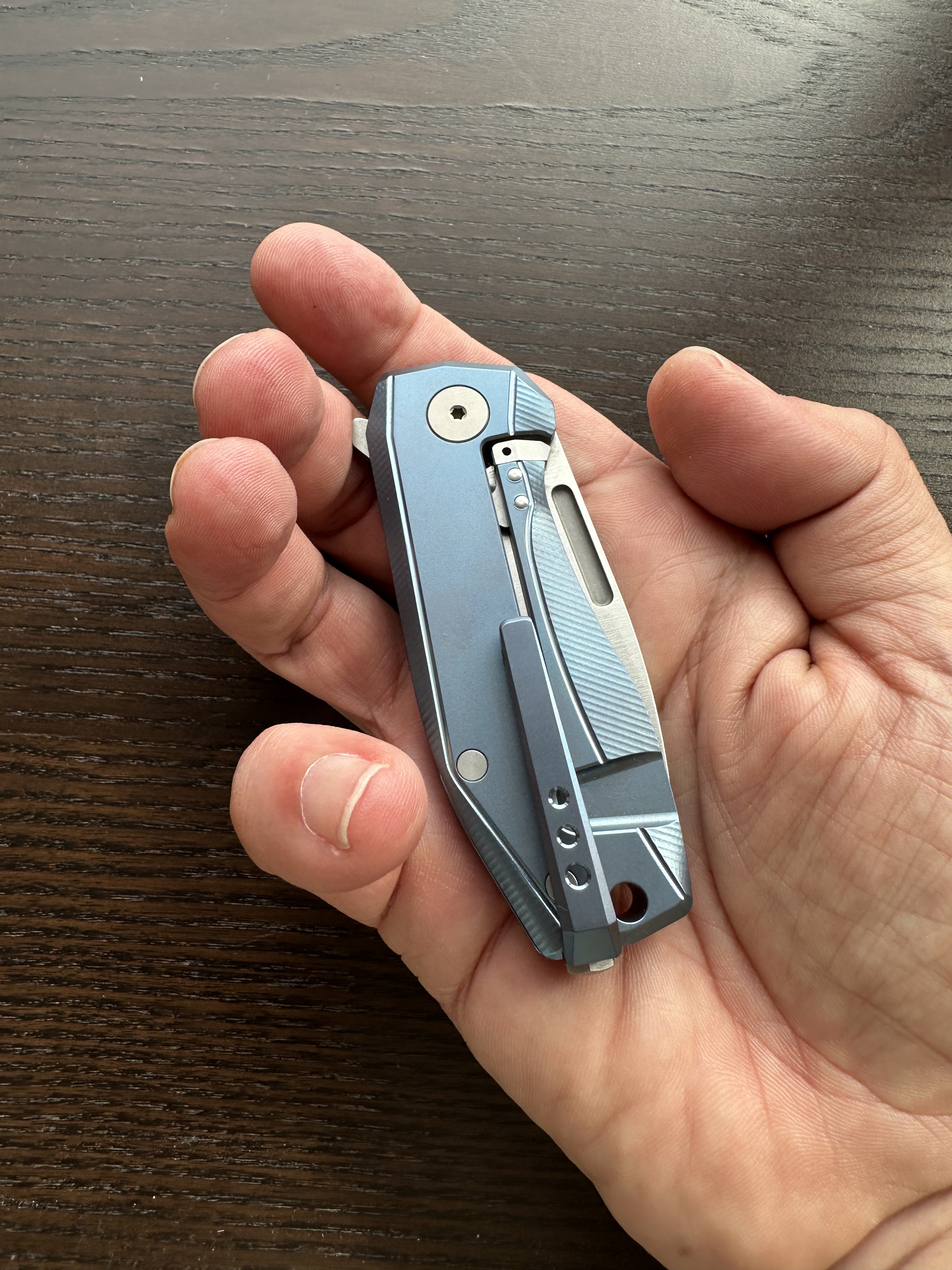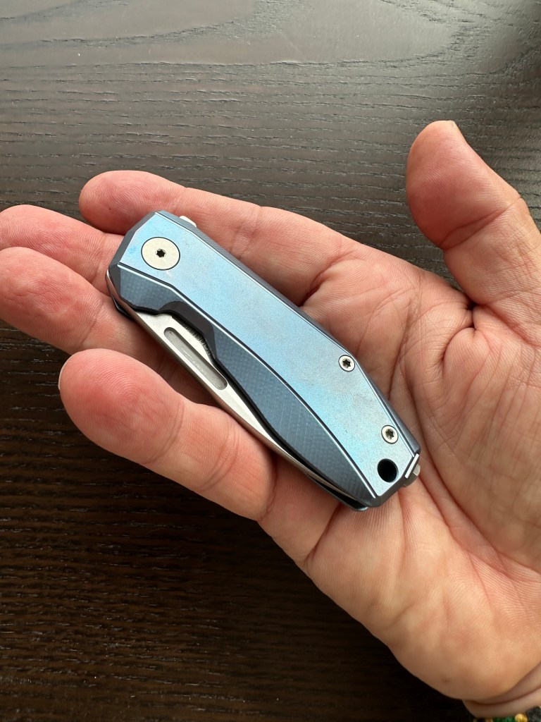 Even though it’s light, the PITS2 feels dense and substantial in the hand. If you love titanium, you immediately recognise that warm, almost organic sensation it gives in the palm. Chris Reeve was the first to offer that pure‑titanium tactile experience, and the PITS2 carries that same aura.