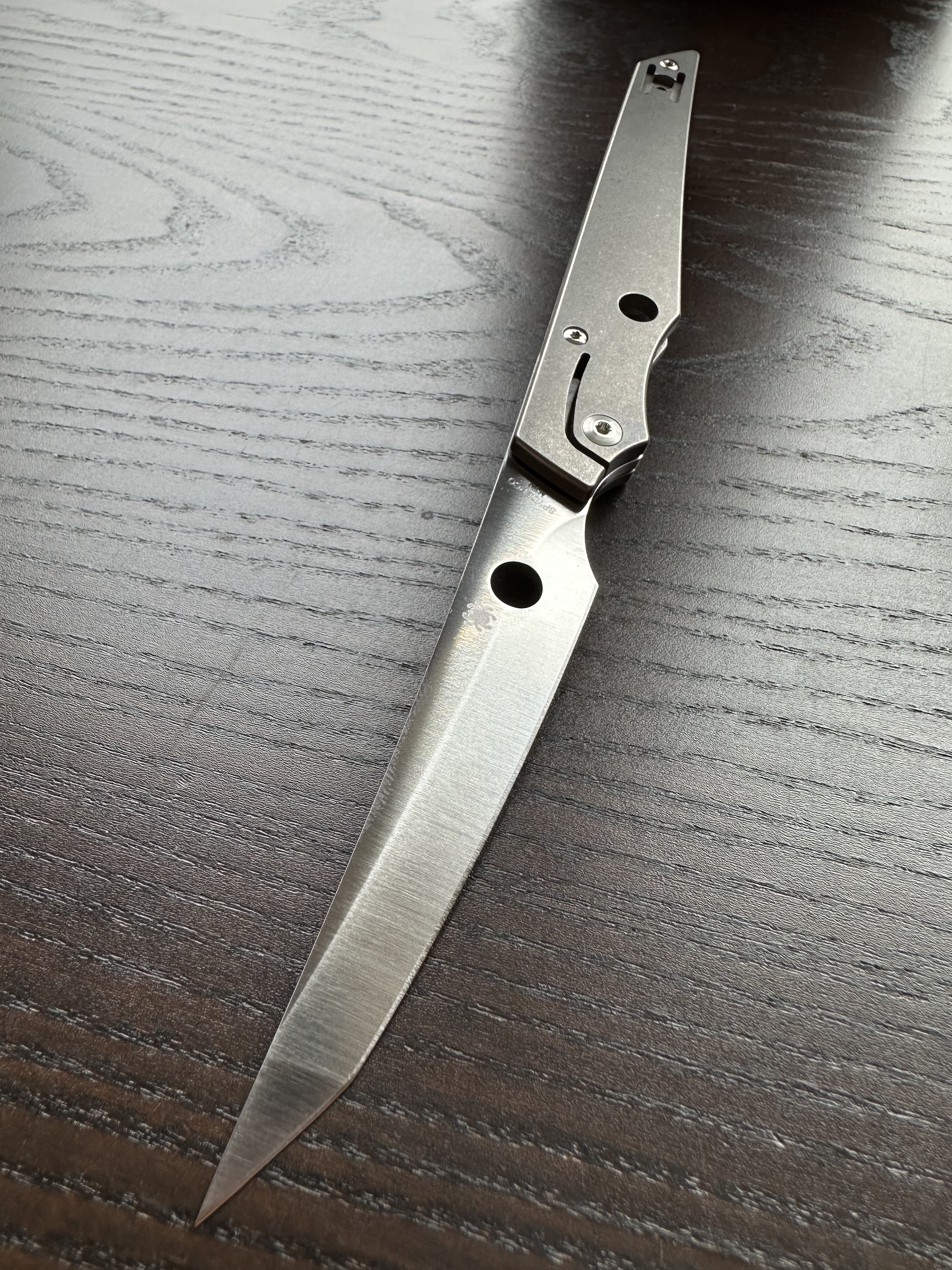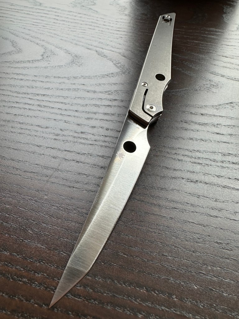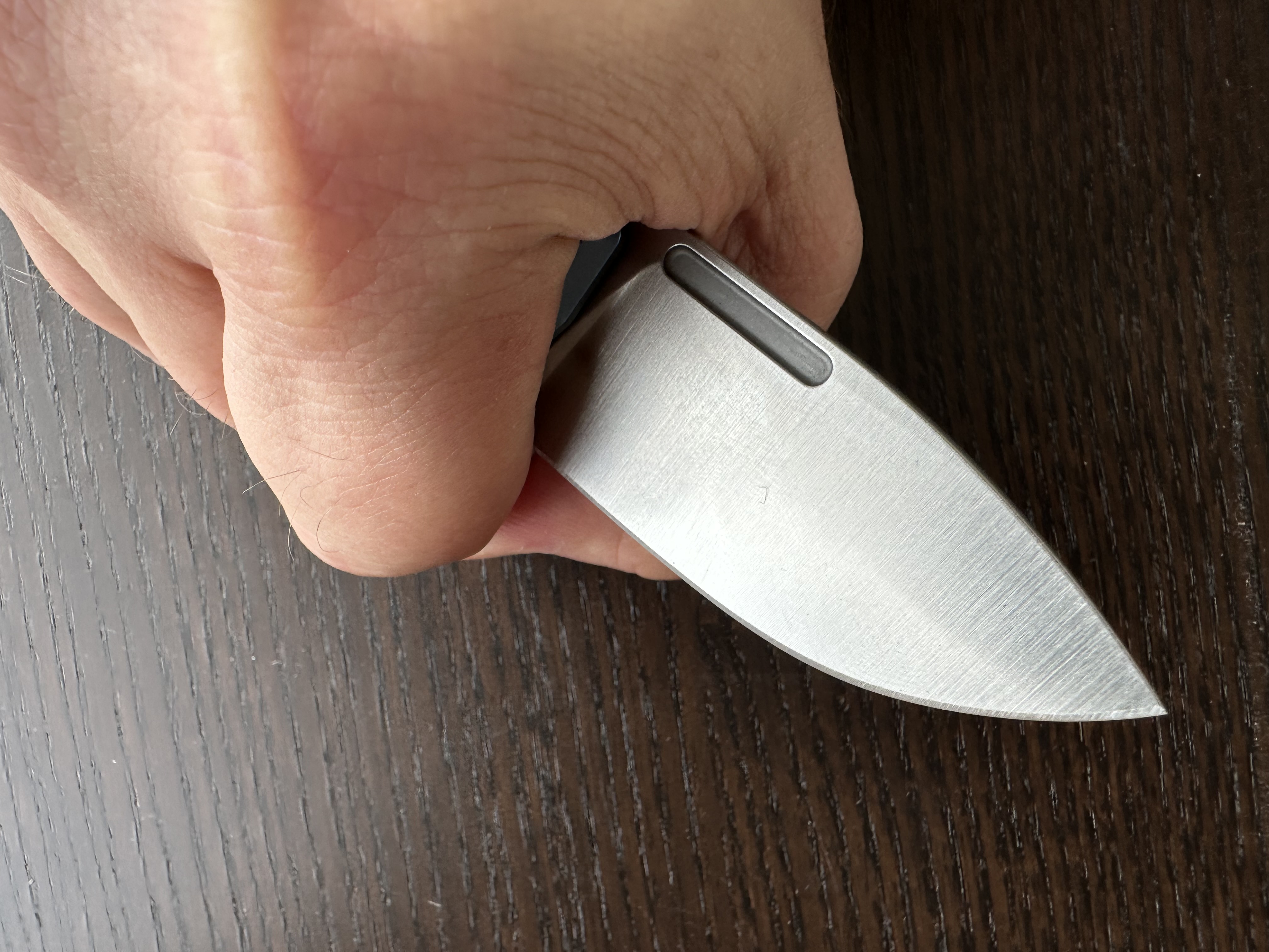 Nope. The SlipIt flagship UKPK, for example, also has a thin edge, and you can even dress it up with titanium scales if you feel like it. Its mechanism is also stiffer, with a two-stage closing “safety” that makes the blade feel more controlled on the way down.