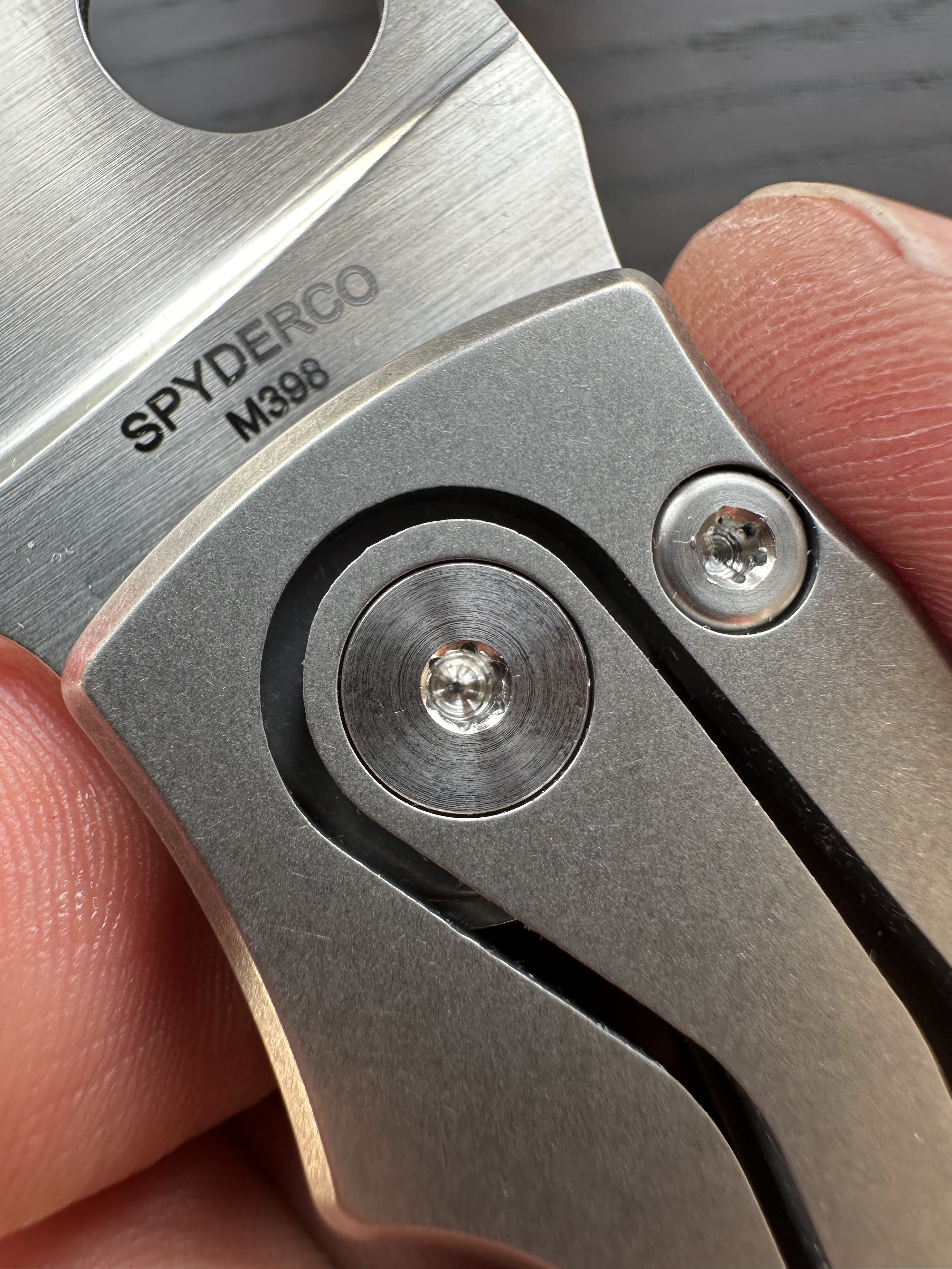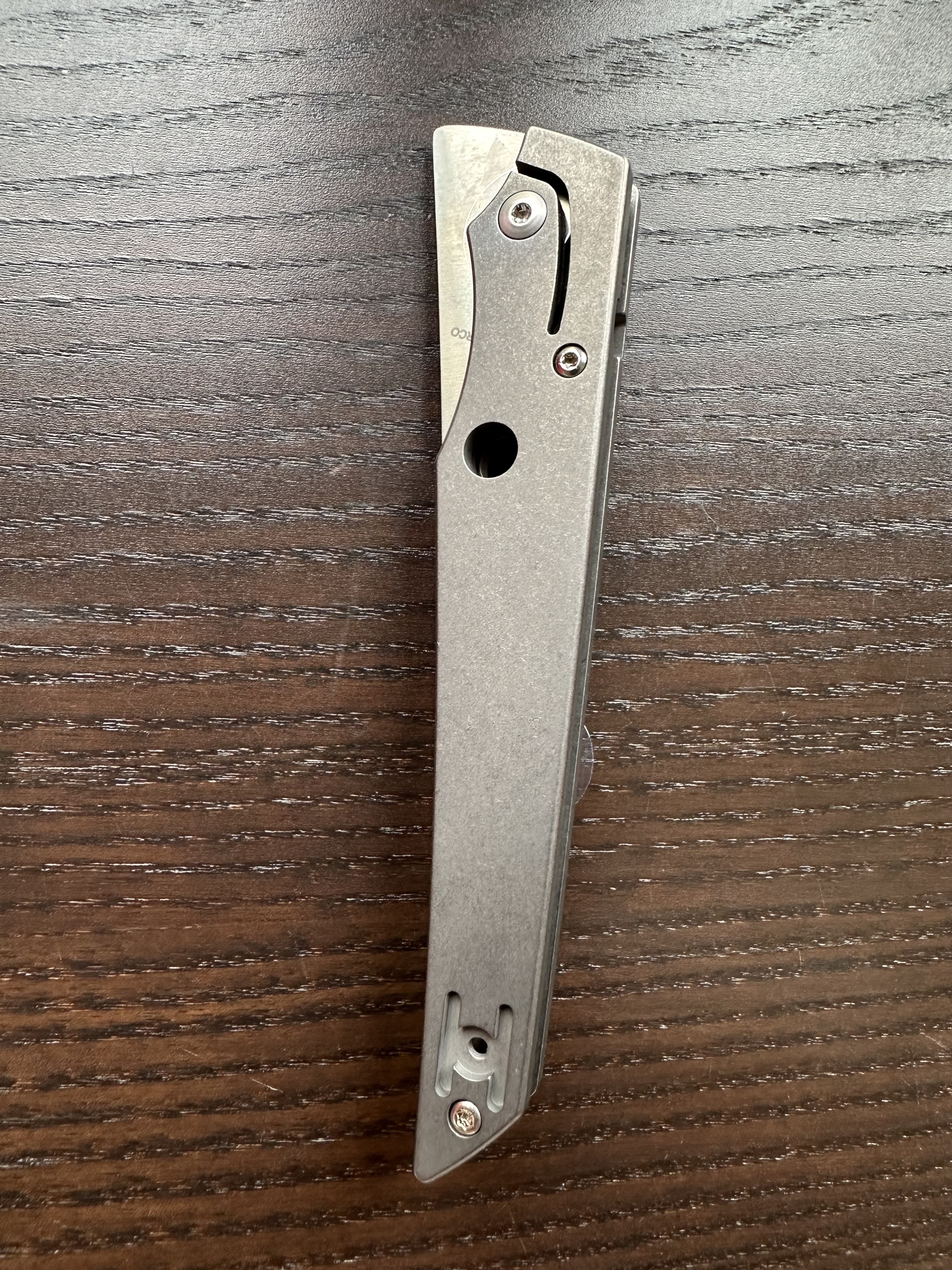 The cutout for the mechanism isn’t beveled, so you can feel its slightly sharper edge. I’ve also noticed that the two handle slabs are symmetrical, while the cutouts around the pivot are not identical.