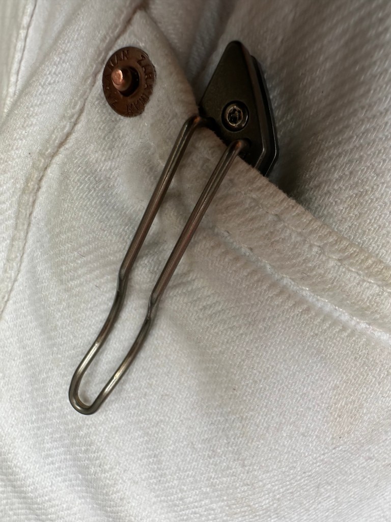 Low profile wise: a tip if you are ever checked, do not open your knife with one hand, use both.