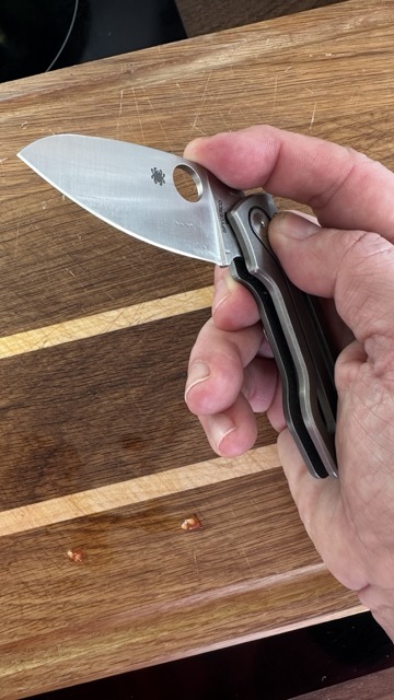 Then your thumb finds the hole. It’s stiffer than most Spydercos I know, but that final click when fully opened is immensely satisfying. Forget about using your ring finger — it’s your thumb or nothing.