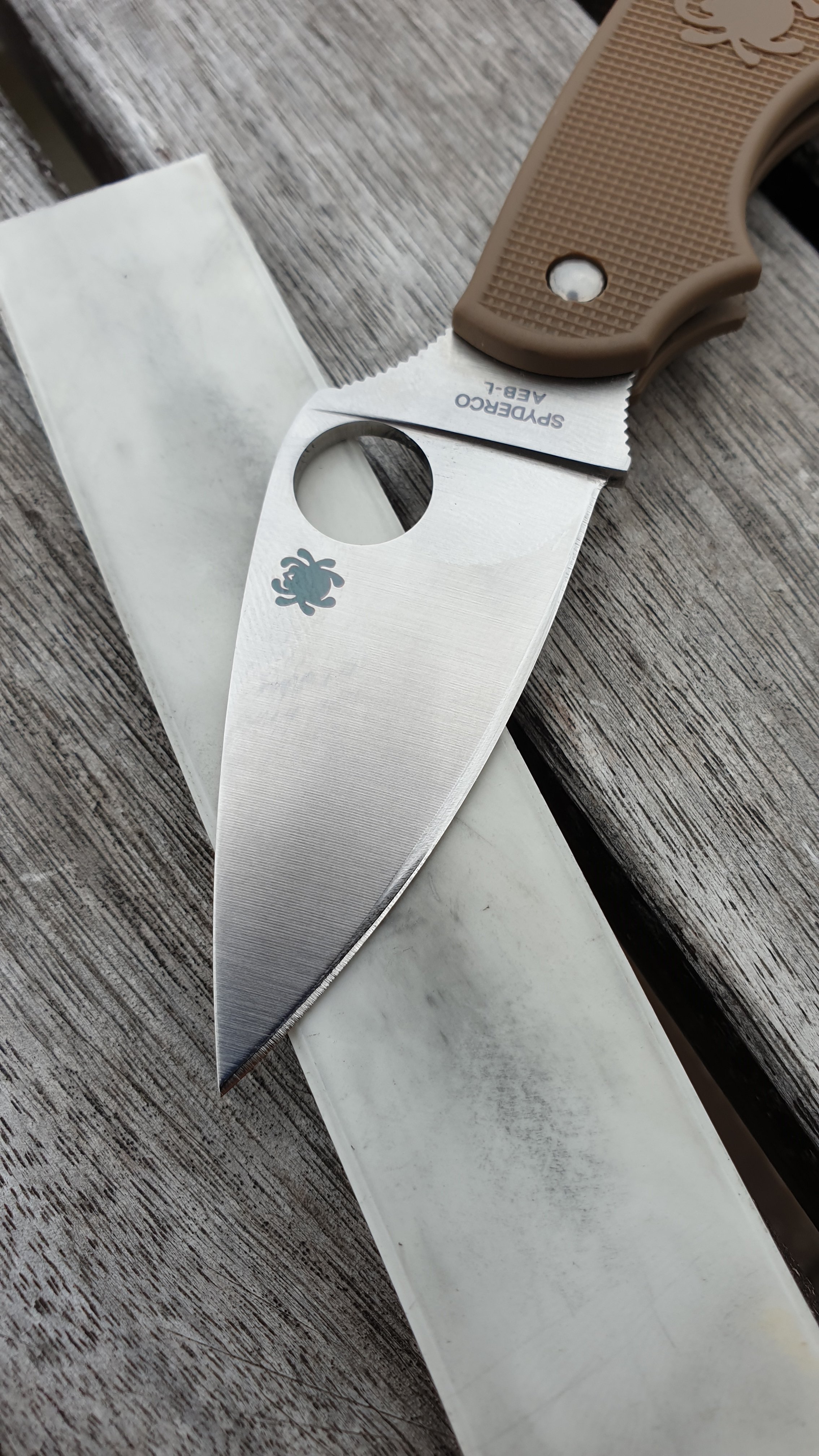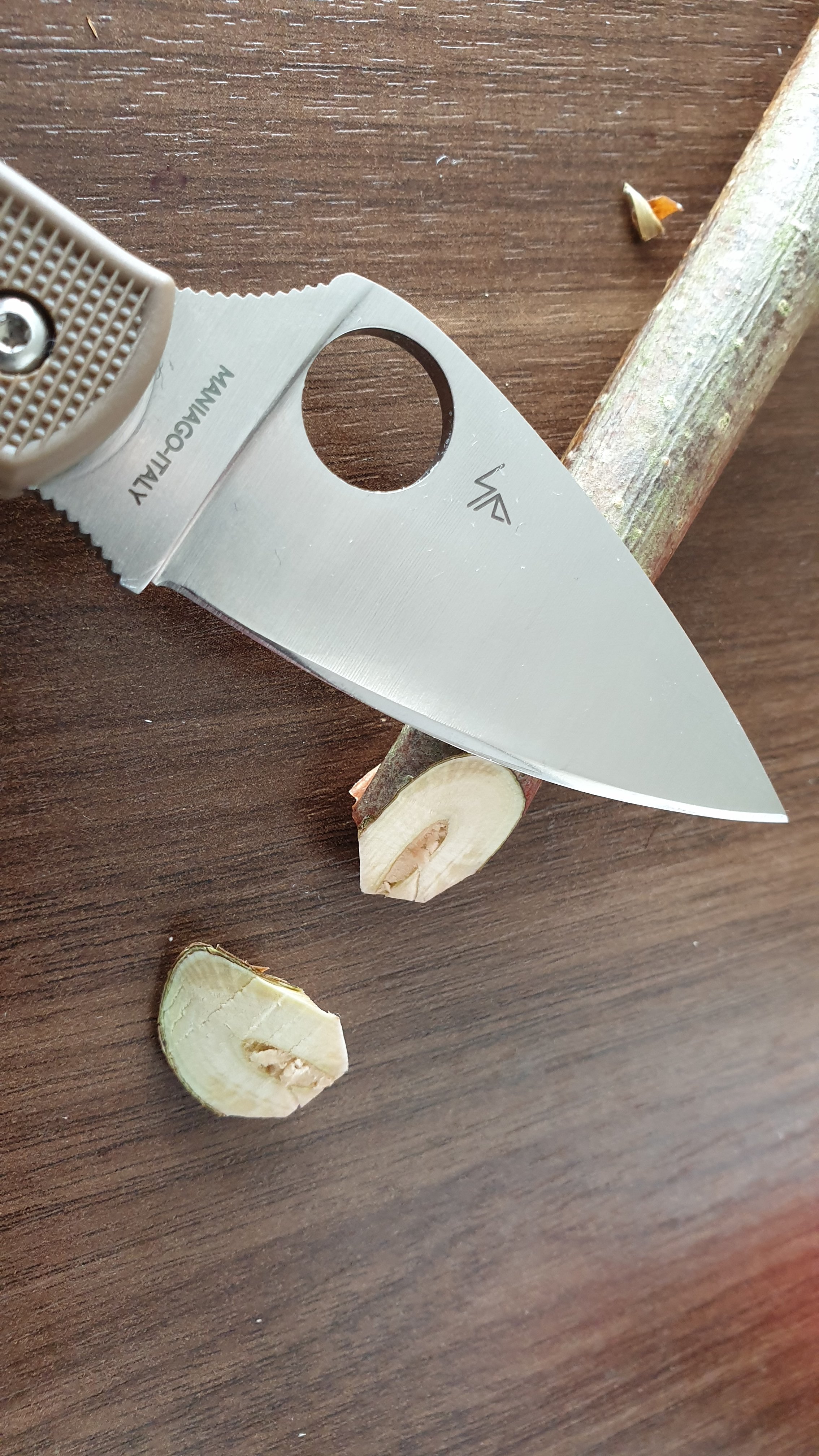 It slice through a Coke bottle butt with its factory edge ! Not many models from the Spyderco line can do that right out of the box.