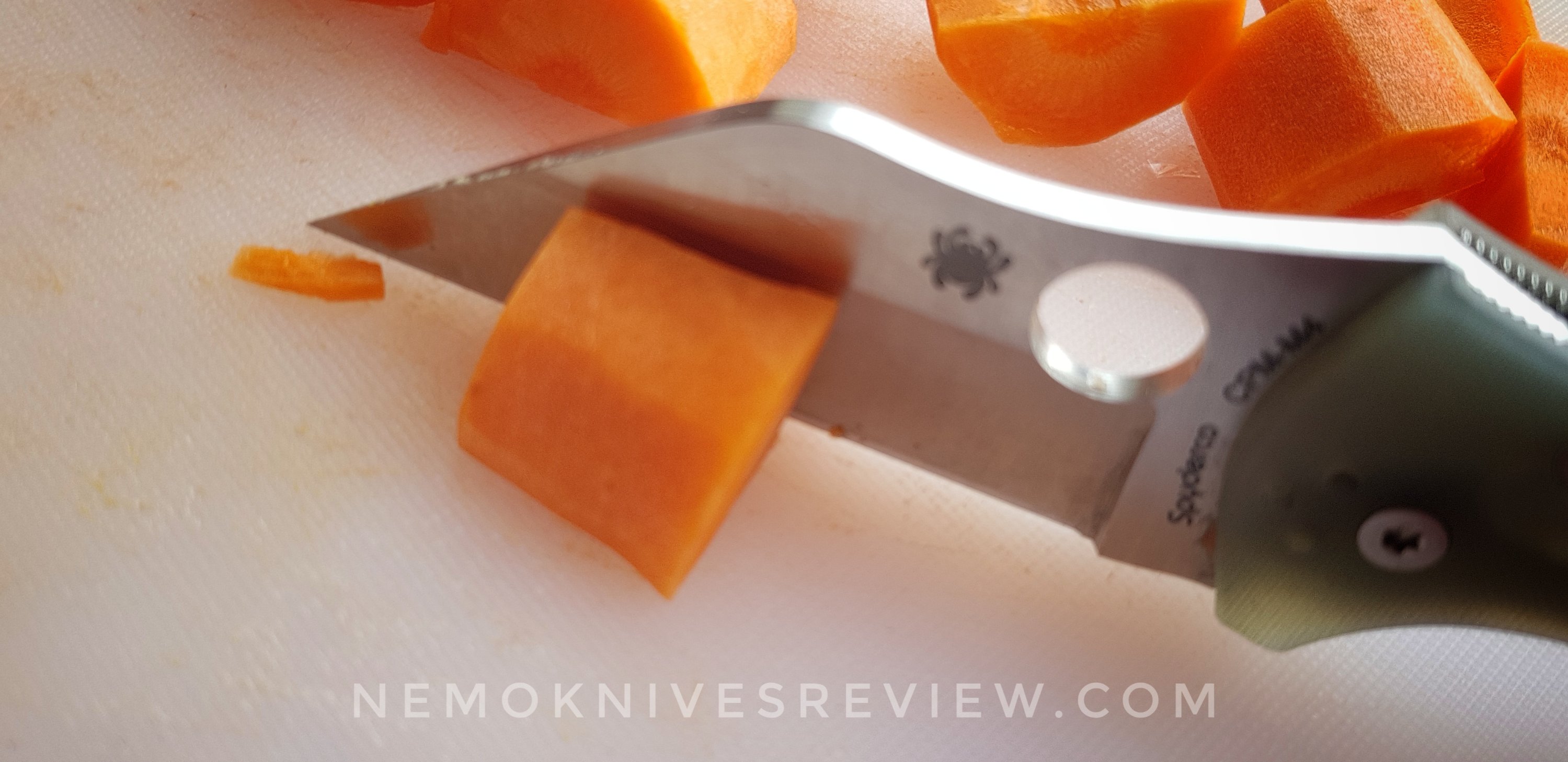 The high blade can adopt the thin geometry needed for easy slices into cherry tomatoes, a simple chore which can be tricky and is an excellent test for sharpness. Tomatoe’s skin can be tricky and rough or razor edges are their best nemesis.