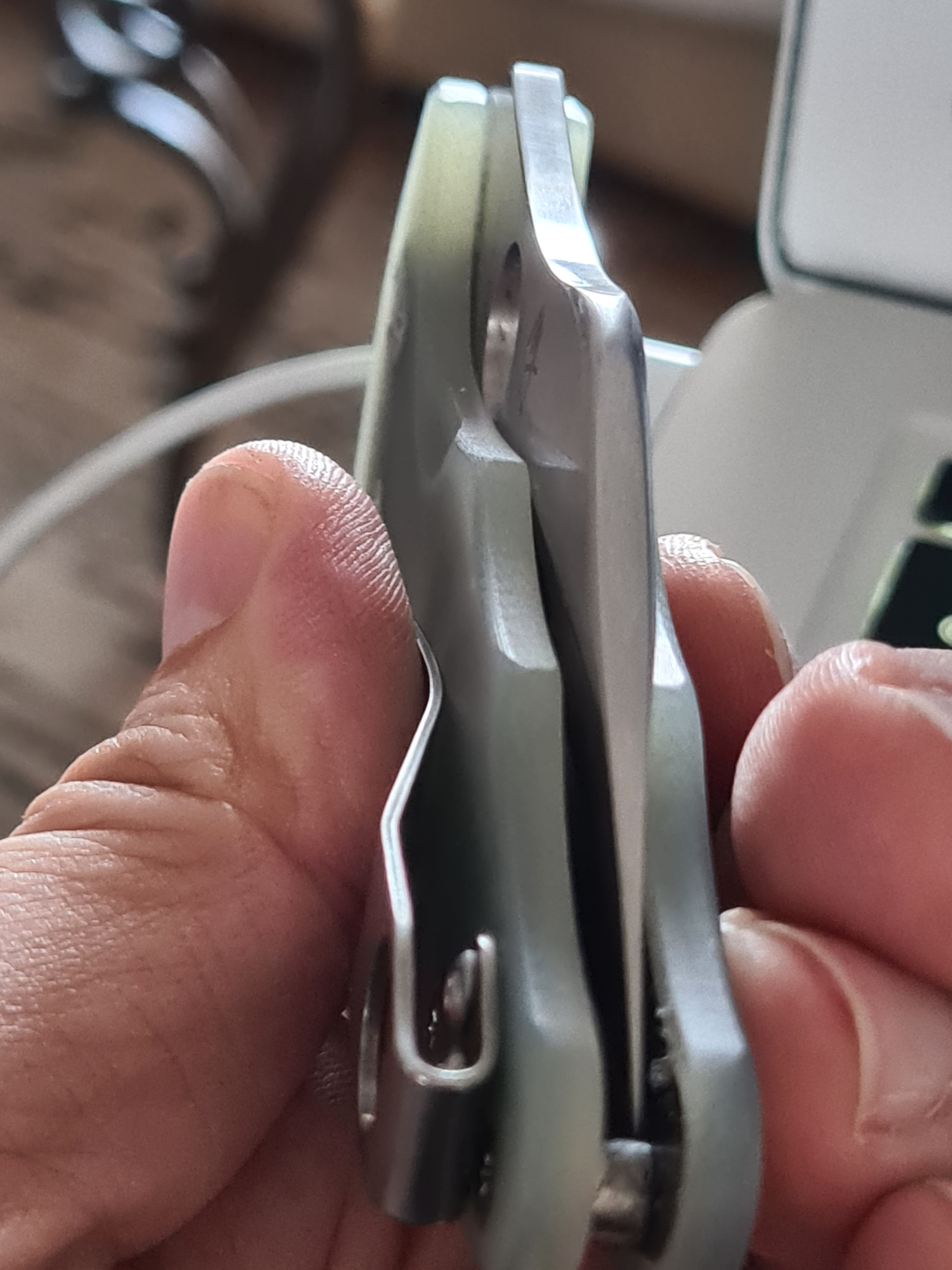 As you can notice the flat handle around the pivot is wide and this is a real nice place to land your thumb. So it is great for indexingand always knowing where the edge is. On the opposite concept side of the cutlery world, an Opinel (great knife by the way) with its rounded handle need a double check to know where the edge is as the handle can turn in your grip). So this “thumb landing strip” around the pivot which is especially wide on Yo2 is a great asset for using this SD knife as an EDC tool.